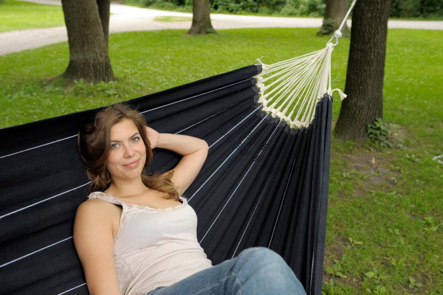 W XL hamaku Barbados można znakomicie odpocząć i zostawić codzienność za sobą! Bardzo miękki, gęsto tkany materiał delikatnie otula ciało, zapewniając maksymalny komfort leżenia. Dzięki licznym linkom mocującym ciężar rozkłada się optymalnie, a hamak idealnie się rozkłada, dając uczucie prawdziwej lekkości.