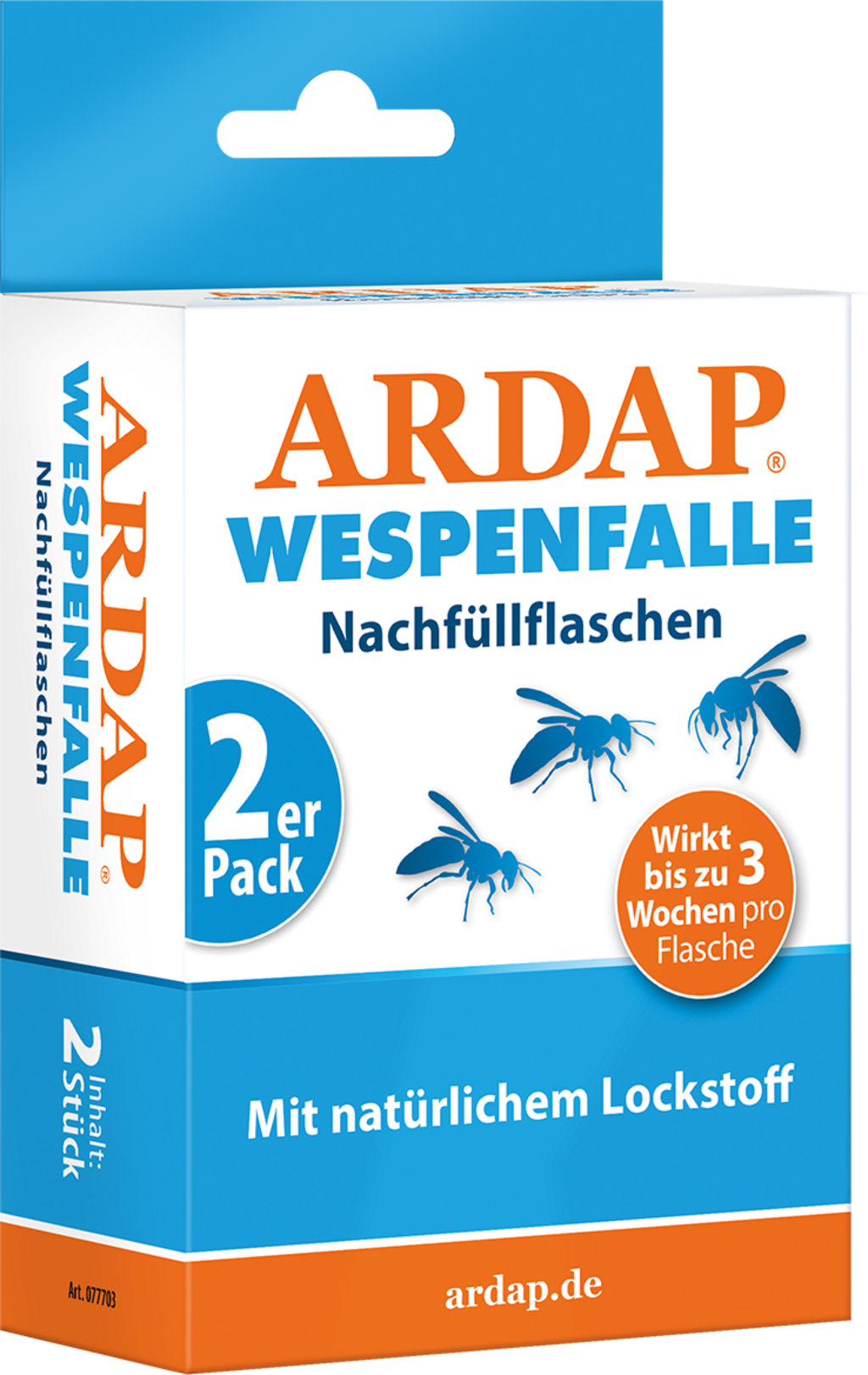 Opakowanie uzupełniające do pułapki na osy Ardap. Idealne do użytku na zewnątrz na patio lub balkonie. Atraktant wabi osy do otworu wejściowego, z którego nie mogą już uciec.
