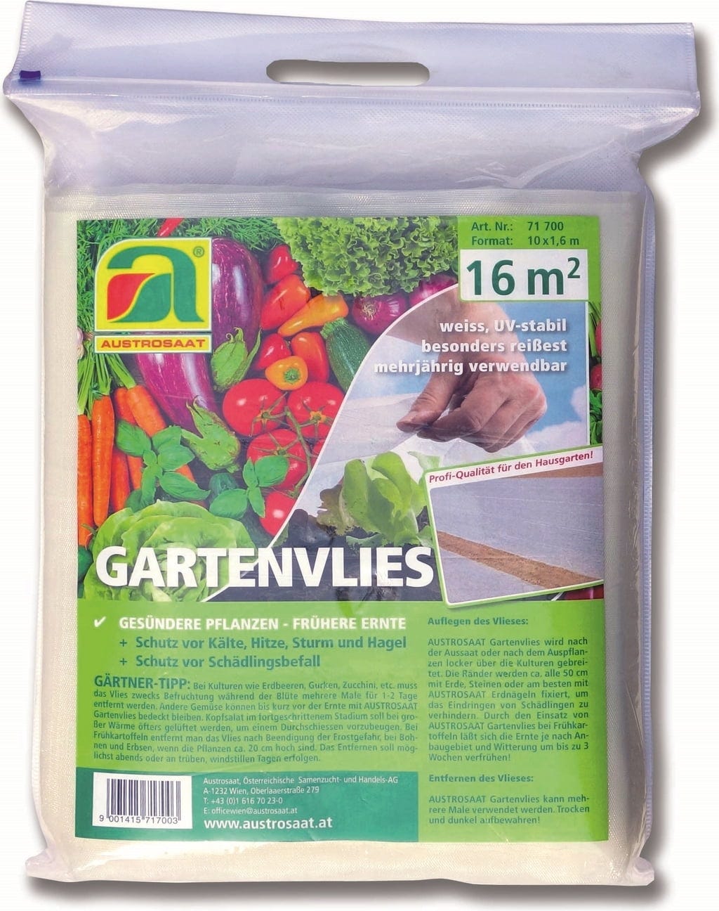 Włóknina ogrodowa chroni warzywa przed zimnem, upałem, owadami, burzami i gradem. Jest szczególnie odporna na rozdarcia oraz na działanie promieni UV i sprzyja zdrowszym roślinom, szybszemu dojrzewaniu i wysokim plonom.