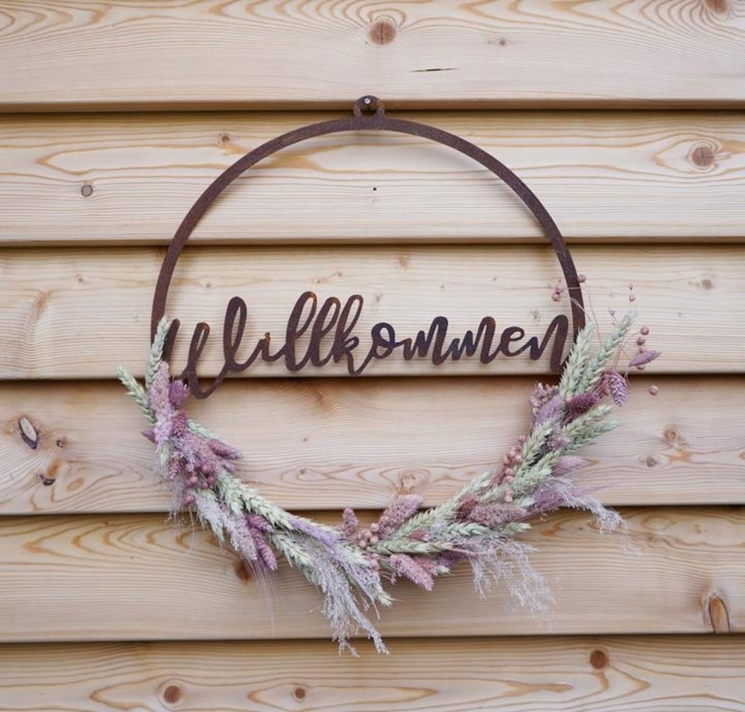 Ten elegancki znak powitalny jest prosty, ale wyjątkowy. Artystyczny napis i stylowe rdzawe wykończenie sprawiają, że jest to idealny dodatek do stylowo zaprojektowanych stref wejściowych.