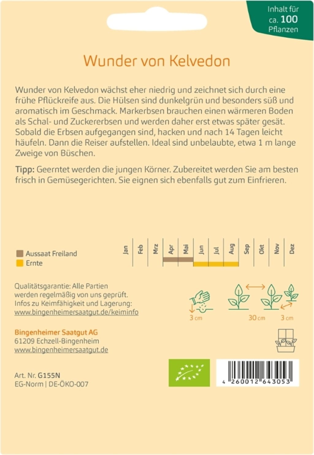 Bingenheimer Saatgut Groszek "Wunder von Kelvedon"