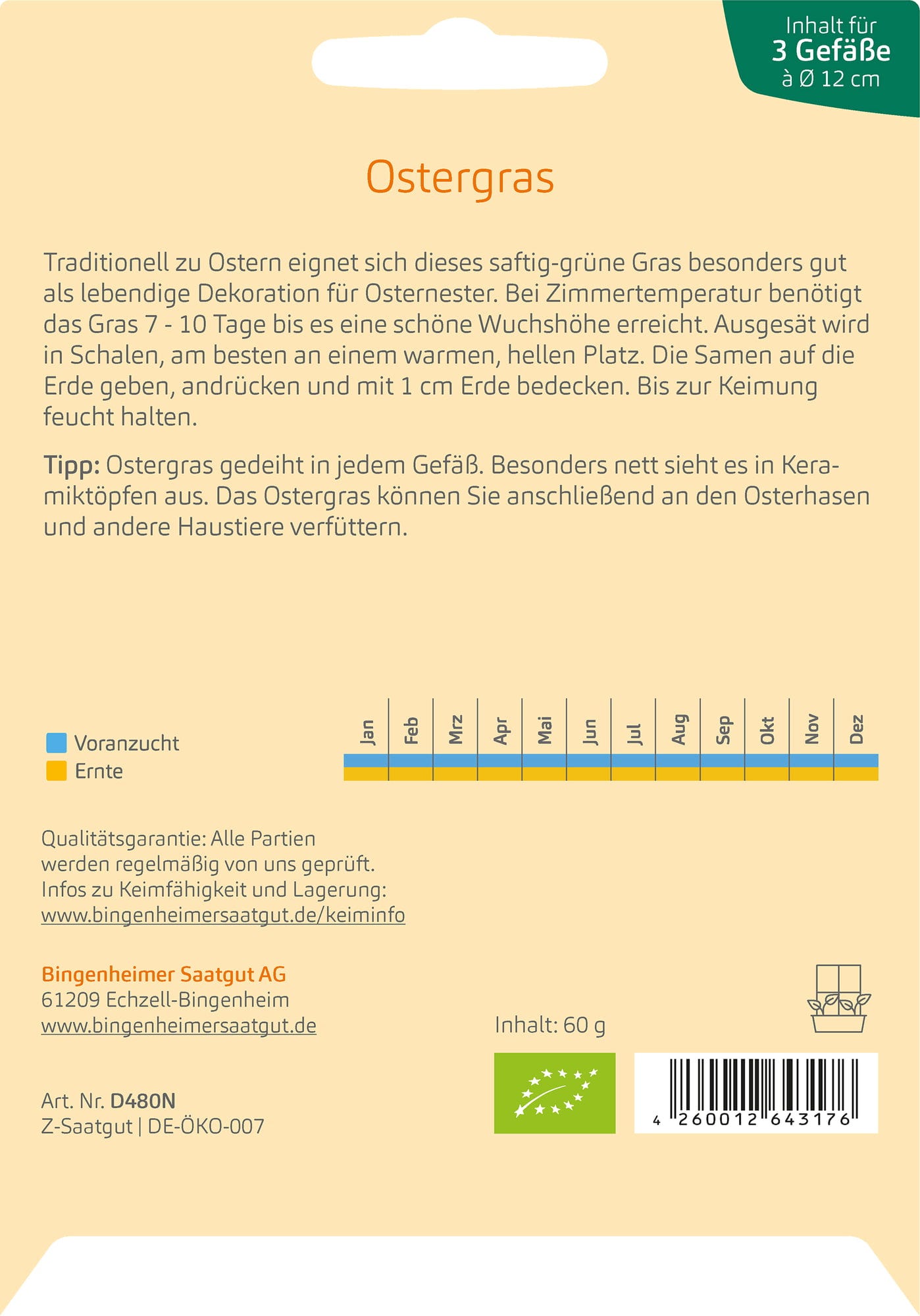 Ta bujna zielona trawa to urocza dekoracja wielkanocna, która idealnie nadaje się do naturalnych gniazd wielkanocnych. Po Wielkanocy trawa wielkanocna może być podawana królikom i innym zwierzętom domowym. Więc nawet czworonożni przyjaciele będą szczęśliwi.