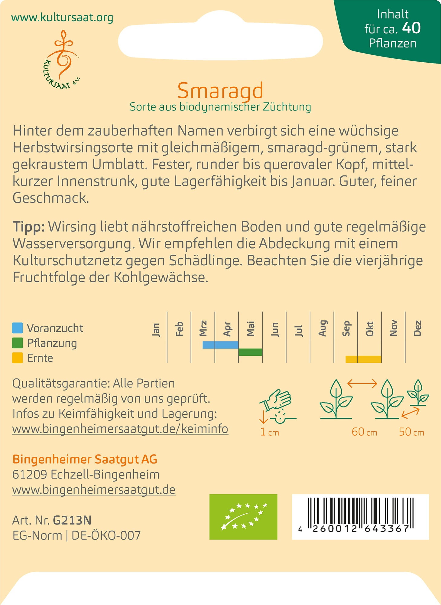 Bingenheimer Saatgut Kapusta włoska "Smaragd"