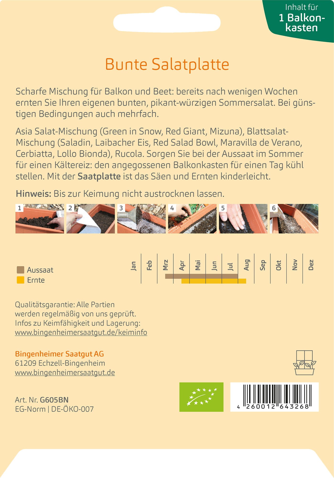 Bingenheimer Saatgut Mieszanka sałat "Kolorowy półmisek sałat", taśma nasienna