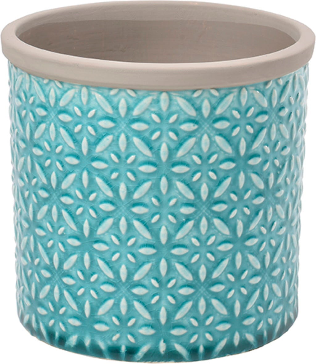 Ta piękna donica wnosi bogatą tradycję Toskanii w projektowaniu ceramiki do Twojego domu. Wzór doniczki przypomina stokrotki, a w połączeniu z jasnym turkusowym kolorem sprawia, że doniczka przyciąga wzrok.
