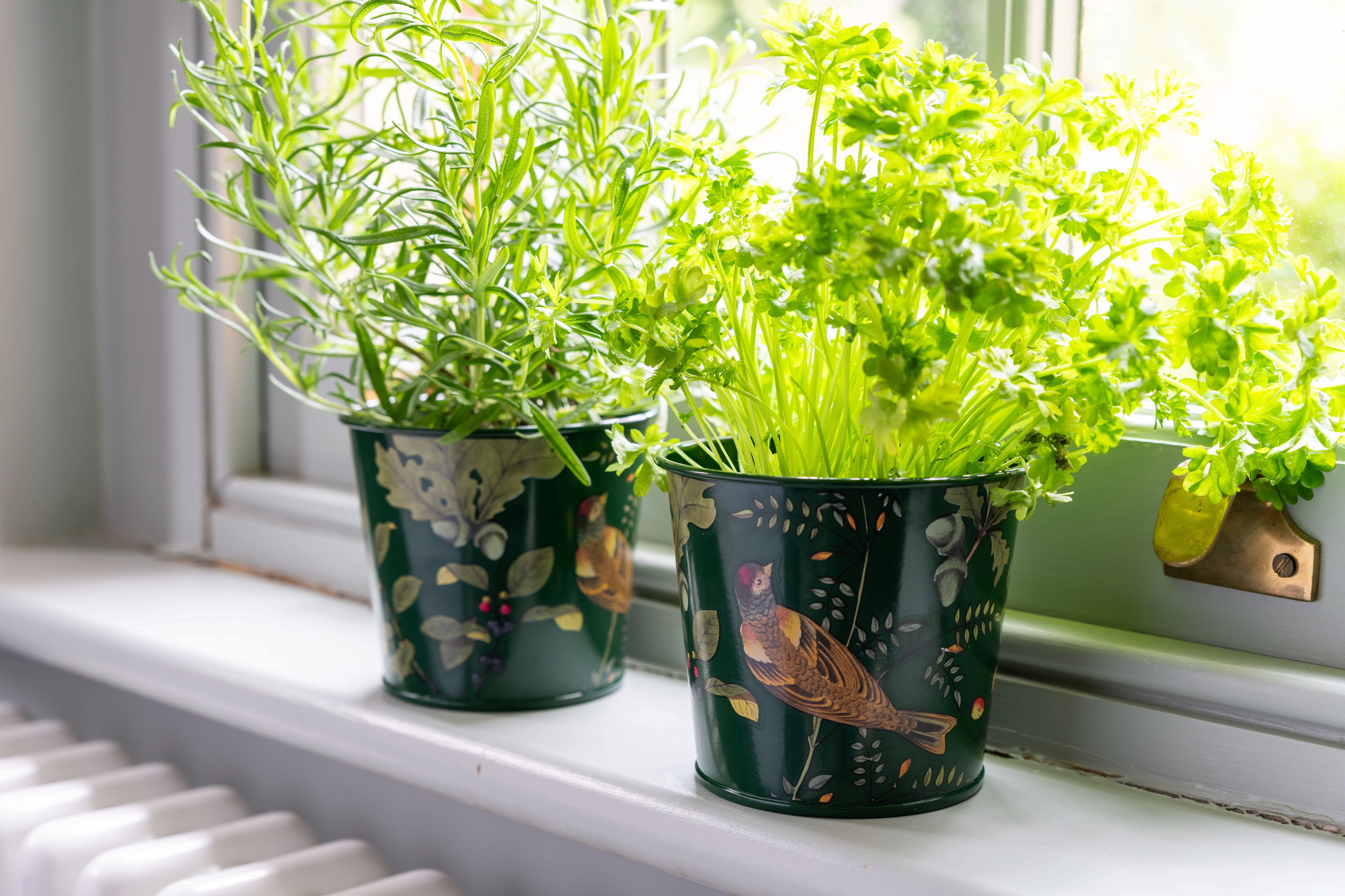 Nadaj swojej kuchni naturalny, a zarazem elegancki charakter dzięki tym stylowym doniczkom na zioła od Burgon & Ball! Doniczka wykonana z wytrzymałej, ocynkowanej stali stanowi idealne miejsce dla świeżych ziół ze sklepu lub własnych upraw. Wzór „Woodland Wonders” zachwyca głęboką zielenią, przywodzącą na myśl spokój leśnej natury, a historyczne ilustracje ptaków, jagód i owadów z archiwów RHS prezentują się na niej wyjątkowo efektownie.