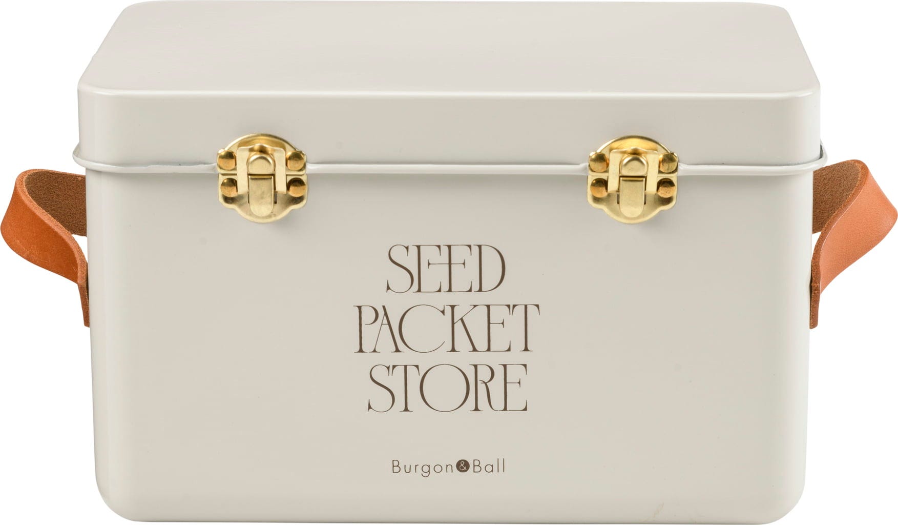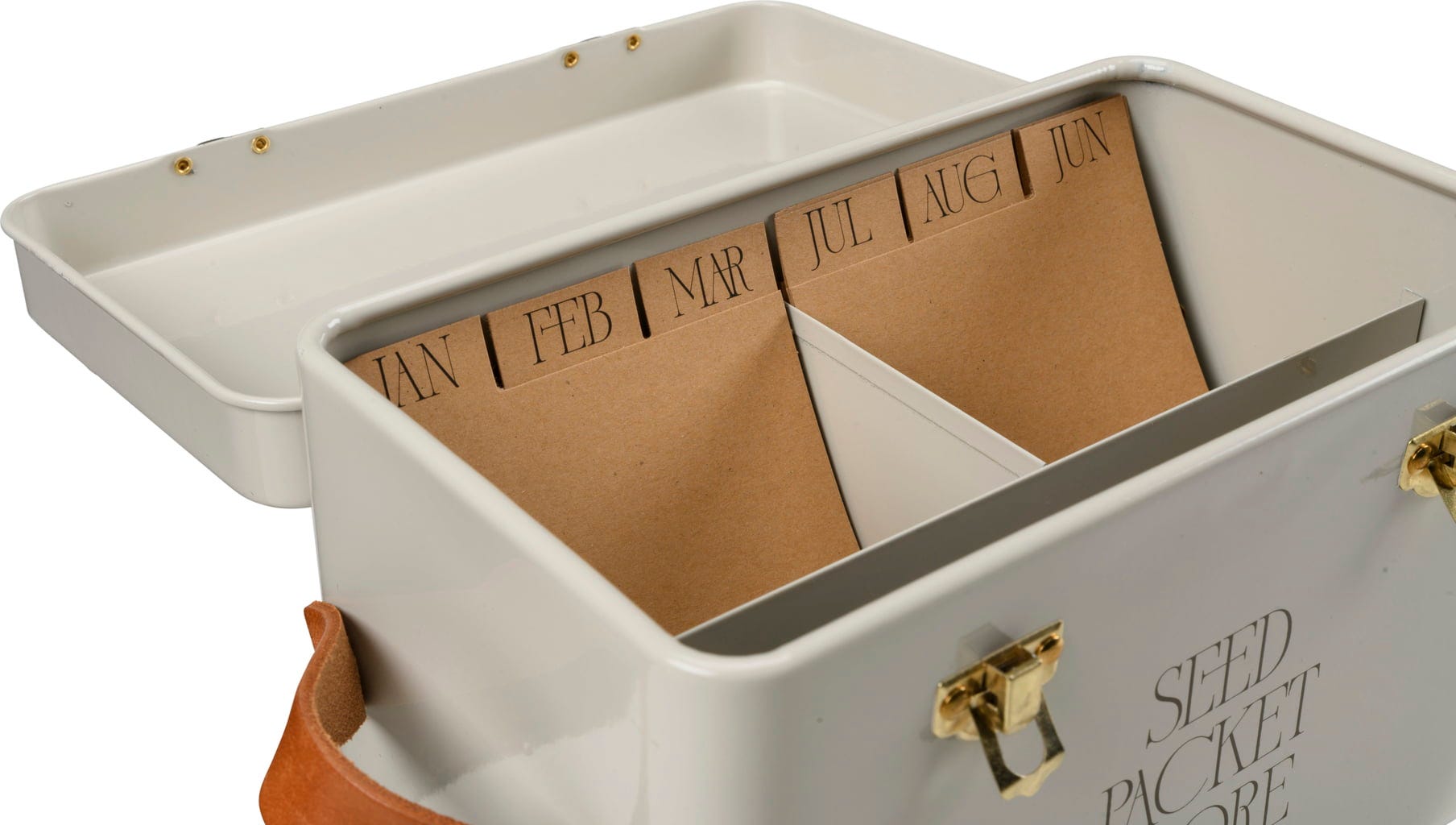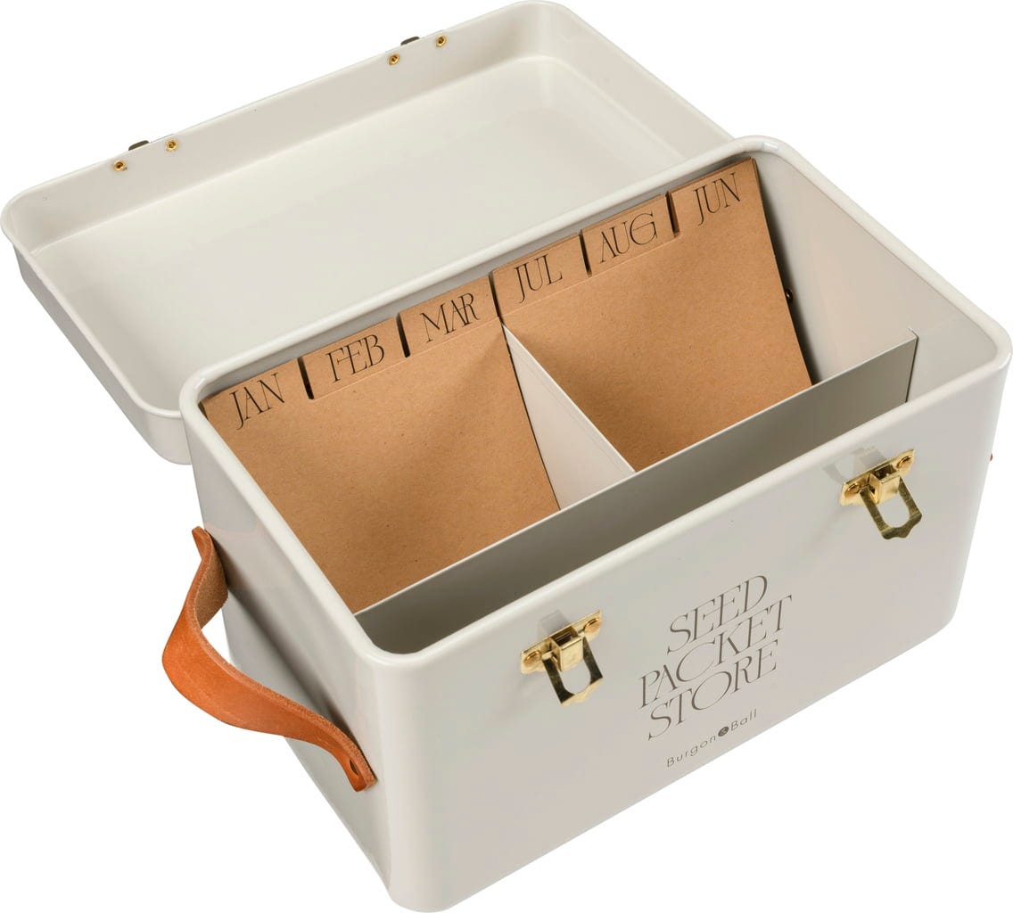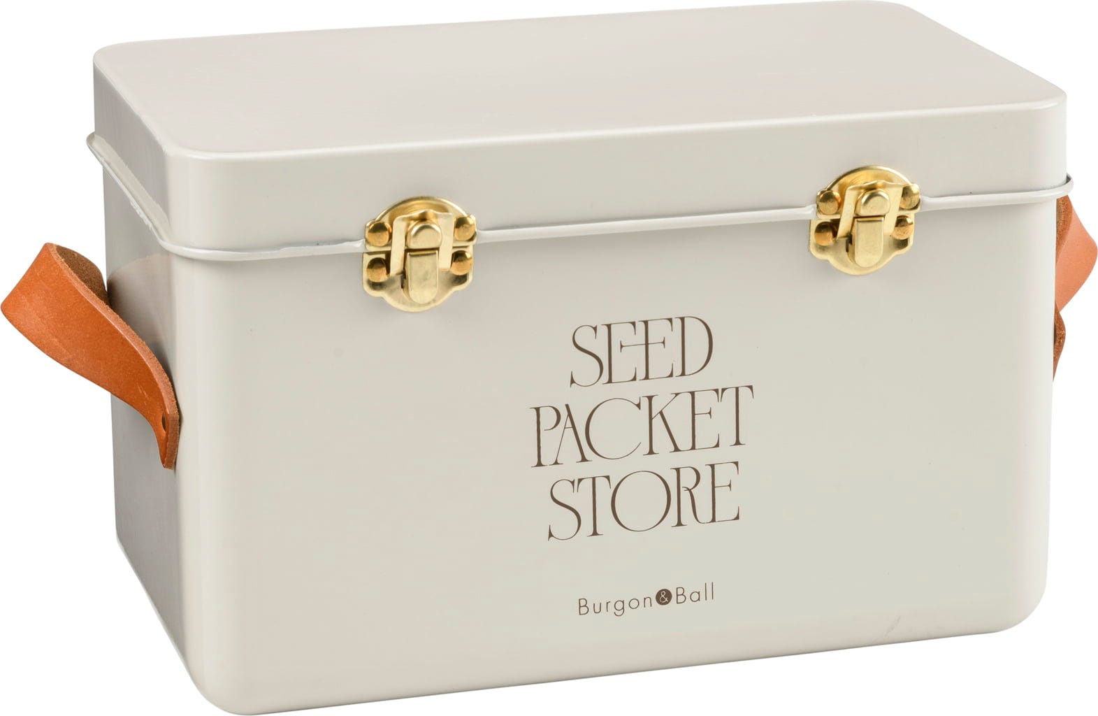 Ten elegancki pojemnik do przechowywania nasion oferuje idealny sposób na bezpieczne i stylowe uporządkowanie nasion roślin. Dzięki eleganckim detalom, skrzynka jest nie tylko praktyczna, ale także przyciąga wzrok w szopie ogrodowej lub na półce.