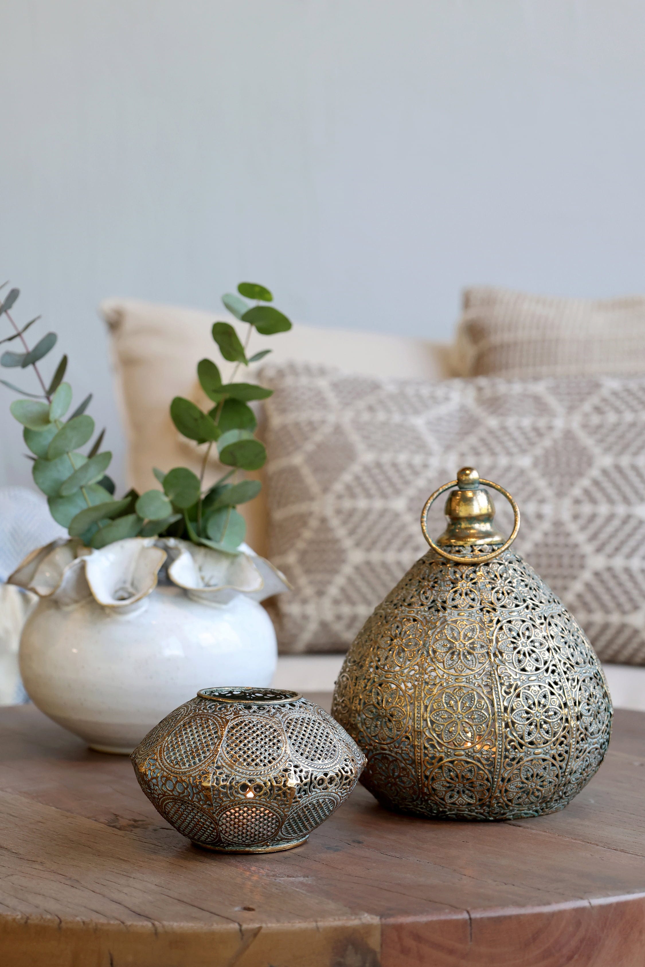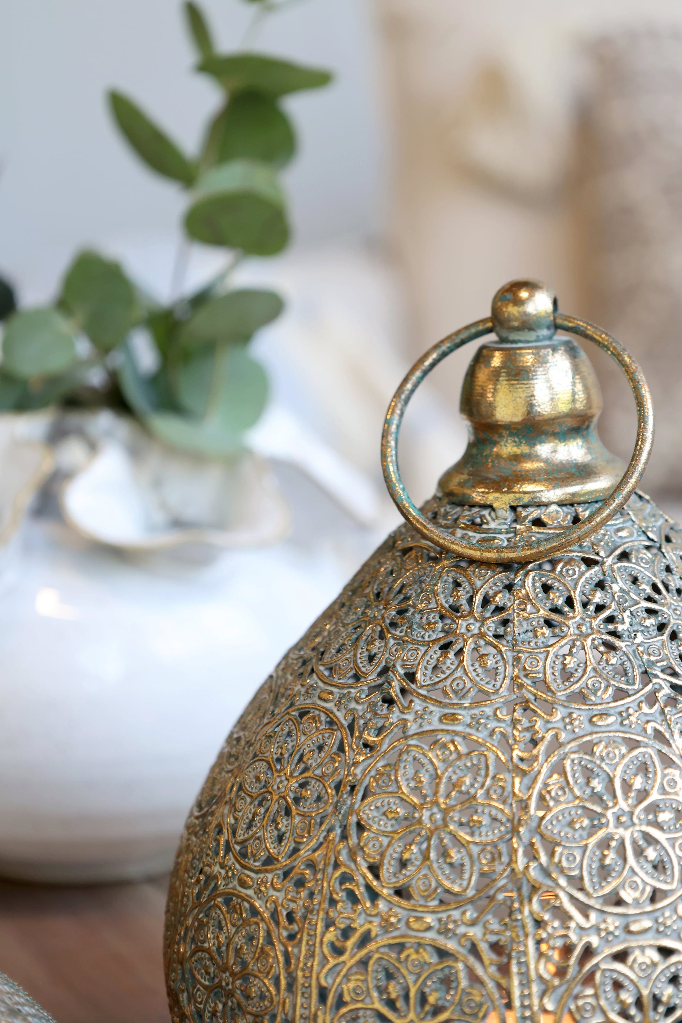Ten elegancki lampion z filigranowym wzorem tworzy nastrojową grę światła w każdym pomieszczeniu lub na patio. Idealnie nadaje się do stworzenia scenerii na przytulne wieczory lub specjalne okazje.