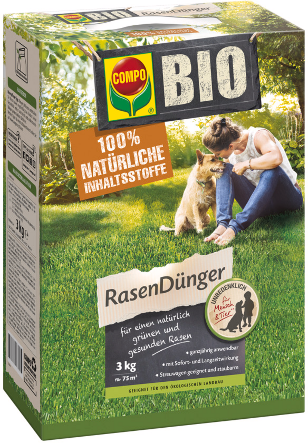 Organiczny nawóz do trawników COMPO jest idealnym pożywieniem dla trawnika, aby uzyskać bujny zielony kolor i wytrzymałą powierzchnię. Czysto organiczne składniki są nieszkodliwe dla ludzi i zwierząt i są uzupełniane przez naturalne organizmy glebowe. Sprzyjają one aktywnemu życiu w glebie i bujnemu rozwojowi korzeni. Nawóz jest bezpyłowy i może być stosowany ręcznie lub za pomocą rozsiewacza. Każda granulka nawozu zawiera główne składniki odżywcze: azot, fosfor i potas, dzięki czemu cały trawnik jest równomiernie nawożony.