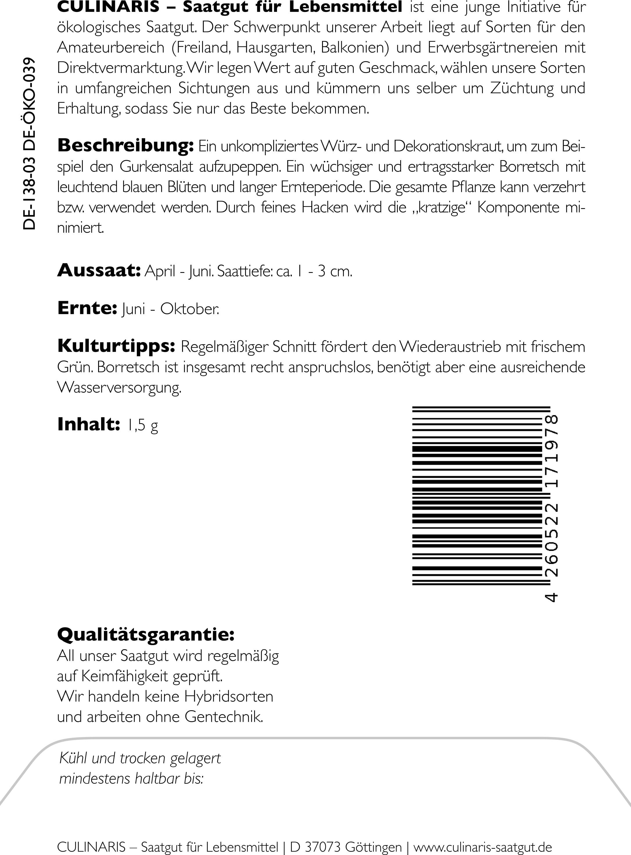 | Producent: | Culinaris - Saatgut für Lebensmittel, Thiegasse 5, 37124, Rosdorf, Niemcy, info@culinaris-saatgut.de, culinaris-saatgut.de |
