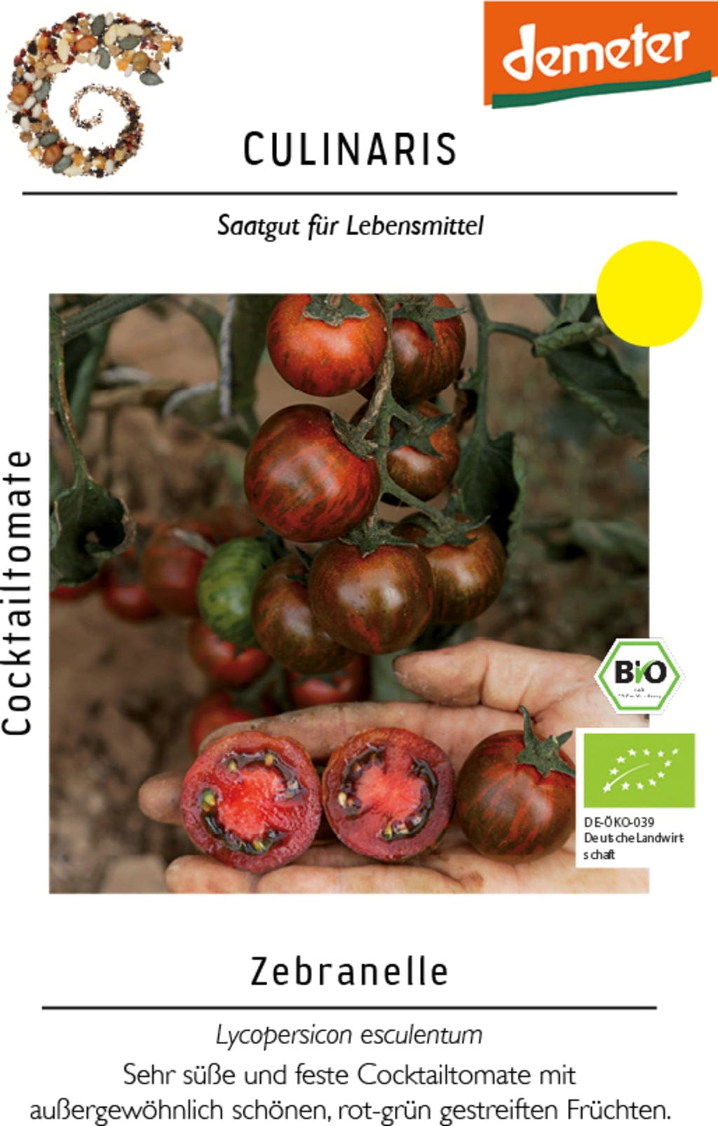 „Zebranelle” to wyjątkowy pomidor koktajlowy o słodkim, lekko korzennym smaku. Jego czerwono-zielone, pasiaste owoce są jędrne i długo zachowują świeżość na roślinie. Smukłe, zdrowe krzewy idealnie nadają się do uprawy w donicach lub na rabatach. Przy zapewnieniu lekkiej ochrony przed deszczem, od lipca niezawodnie dostarcza obfitych zbiorów.