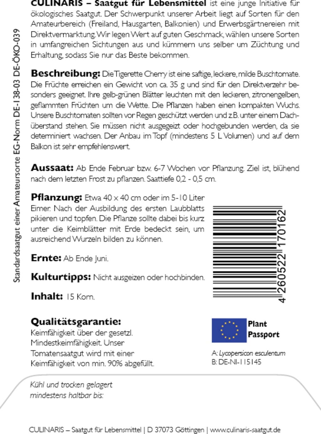 Culinaris Bio Pomidor krzaczasty "Tigerette Cherry", 15 ziaren 14,99 zł (2 998,00 zł / kg)