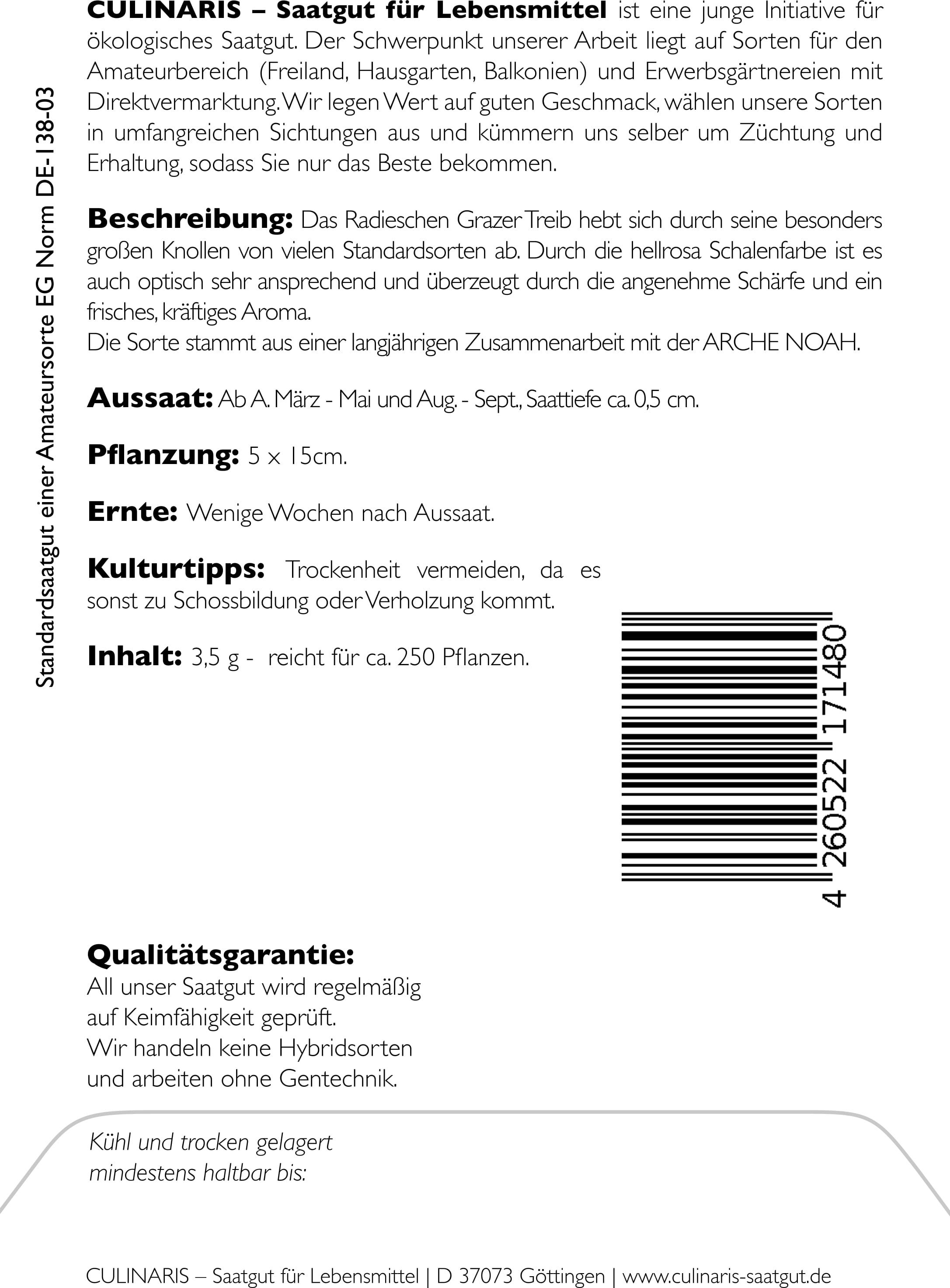 Culinaris Bio Rzodkiewka "Grazer Treib", 3,50 g