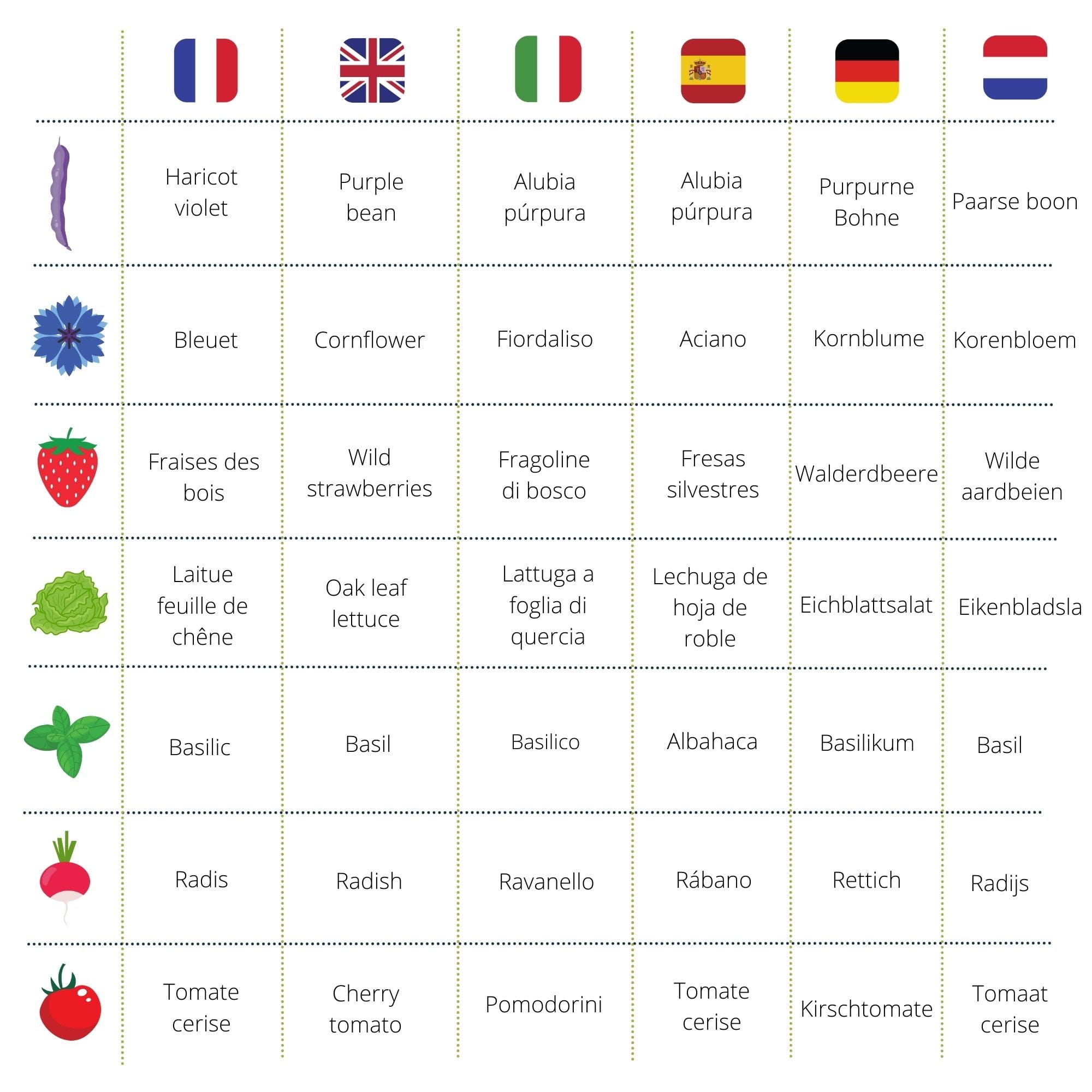 - Siedem odmian nasion organicznych: poziomka, borówka, pomidor cherry, sałata dębolistna, bazylia, fasola purpurowa, rzodkiewka