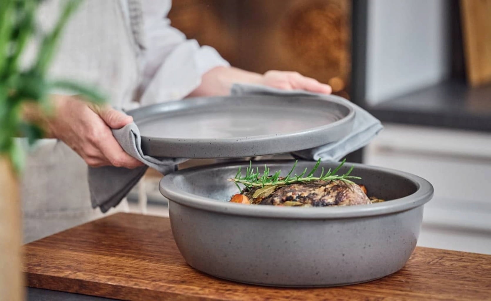 Szczególnie praktyczne: taca do smażenia może być używana jako pokrywka lub podstawka do garnka Keltentopf.