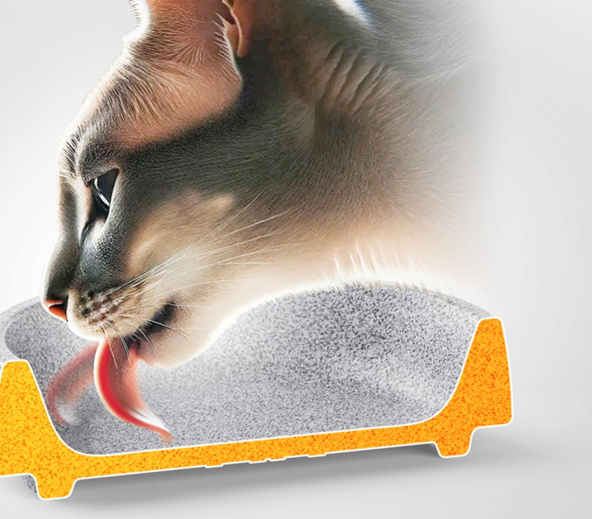 - Ergonomiczny, bardziej płaski kształt specjalnie dla kotów i w celu ochrony wrażliwych wąsów