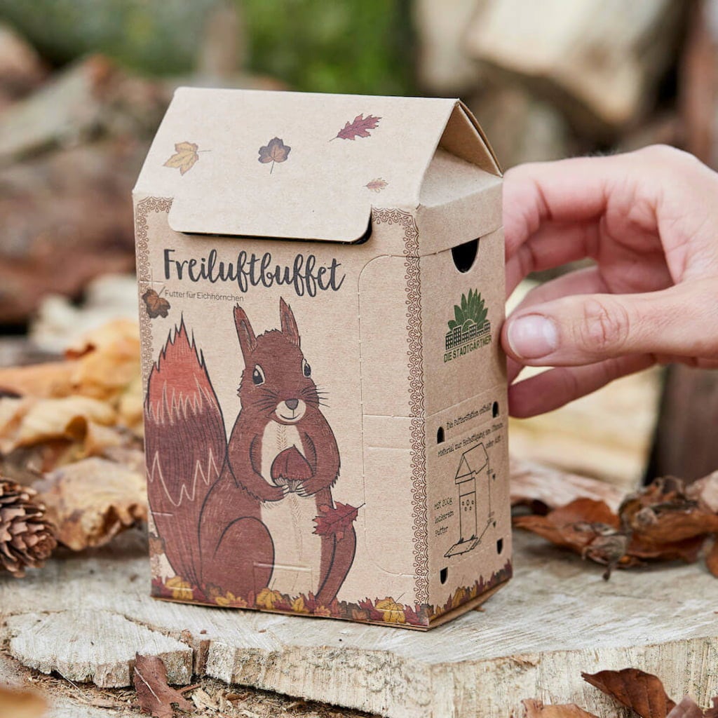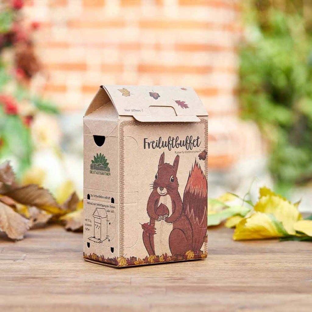 Każdy je lubi - urocze wiewiórki z krzaczastym ogonem, które zwinnie i szybko przemieszczają się z gałęzi na gałąź. Nie tylko ładnie wyglądają, ale są również prawdziwymi pożytecznymi mieszkańcami lasów. Ten "bufet na świeżym powietrzu" to coś, co pozwoli im odpocząć od ciężkiej pracy. Wiewiórki znajdą tu mnóstwo smacznych smakołyków, które pozwolą im naładować baterie, a także świetne zapasy do ich zimowej kryjówki.