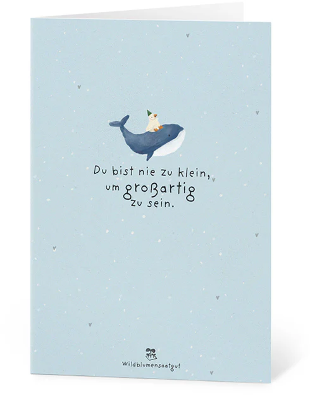 Nigdy nie jesteś za mały, by być wielki! Ta kartka jest miłym przypomnieniem, że nawet małe kroki mogą zrobić wielką różnicę. Idealna jako zachęta na rozpoczęcie szkoły, urodziny lub po prostu dla kogoś, kto potrzebuje odrobiny otuchy.