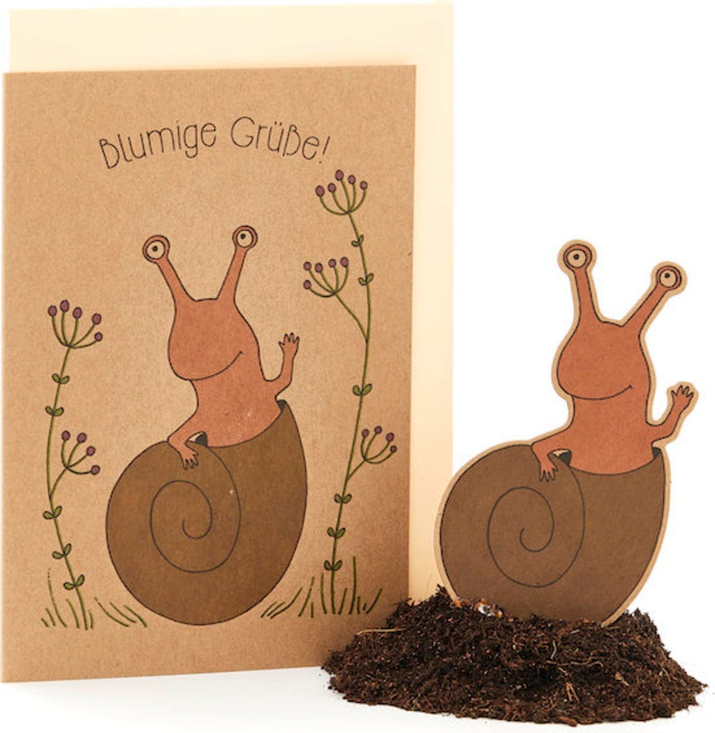 Ta wspaniała karta to wyjątkowy prezent dla szczególnej osoby, idealny dla wszystkich miłośników kwiatów i entuzjastów ogrodnictwa. Słodki ślimak wraz z nasionami dzikich kwiatów wnosi prawdziwie ogrodowy klimat do każdego domu, błyskawicznie poprawiając nastrój. Umieść ślimaka z nasionami w ziemi tak, aby ten uroczy maluch wciąż nieco wystawał – już wkrótce otoczy go mnóstwo pięknych, dzikich kwiatów.