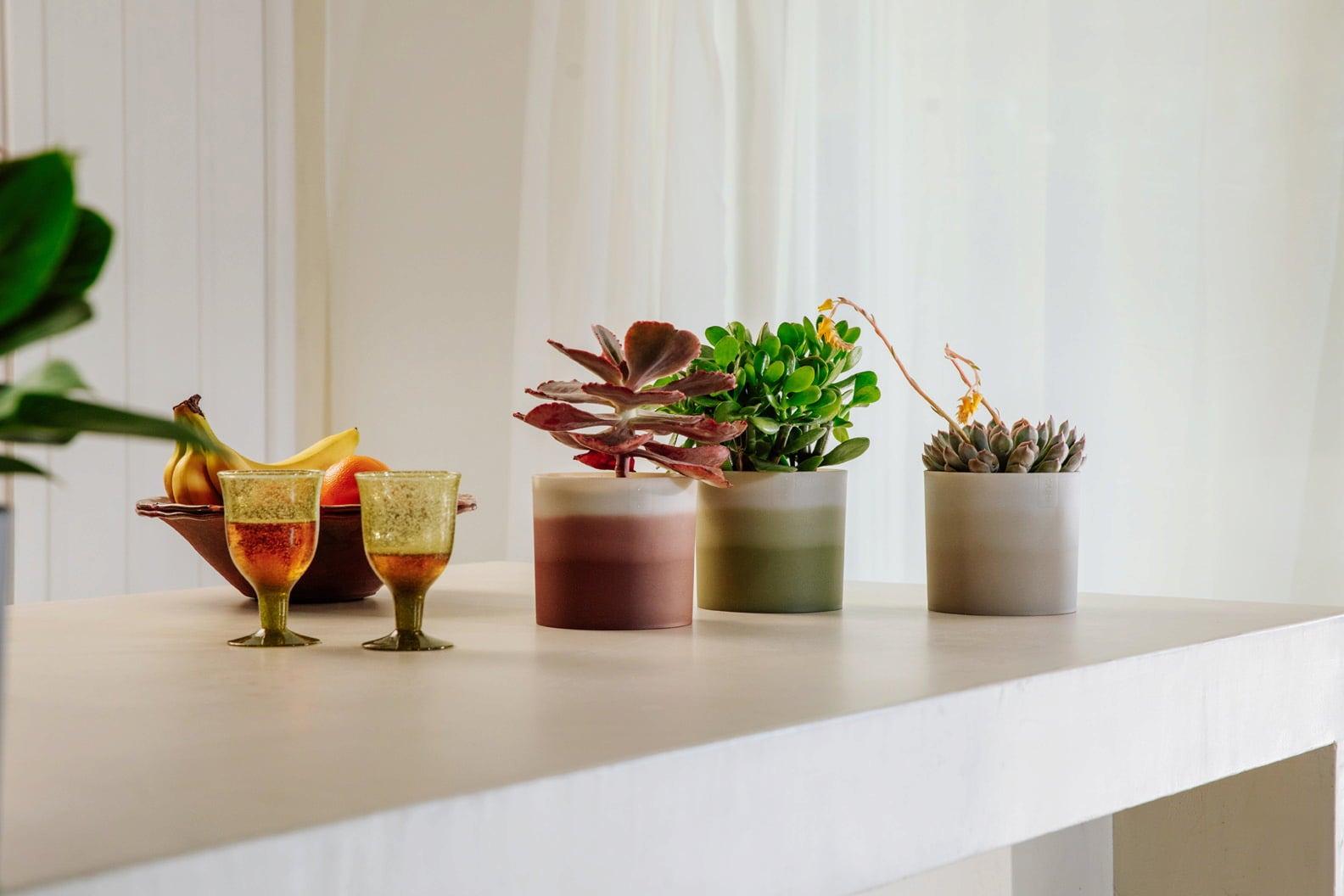 Ta doniczka wykonana z plastiku pochodzącego z recyklingu zachwyca naturalnym wyglądem, delikatnym gradientem kolorów i solidną jakością. Wnosi ona do domu wyjątkową atmosferę i prezentuje rośliny domowe w unikalny sposób.