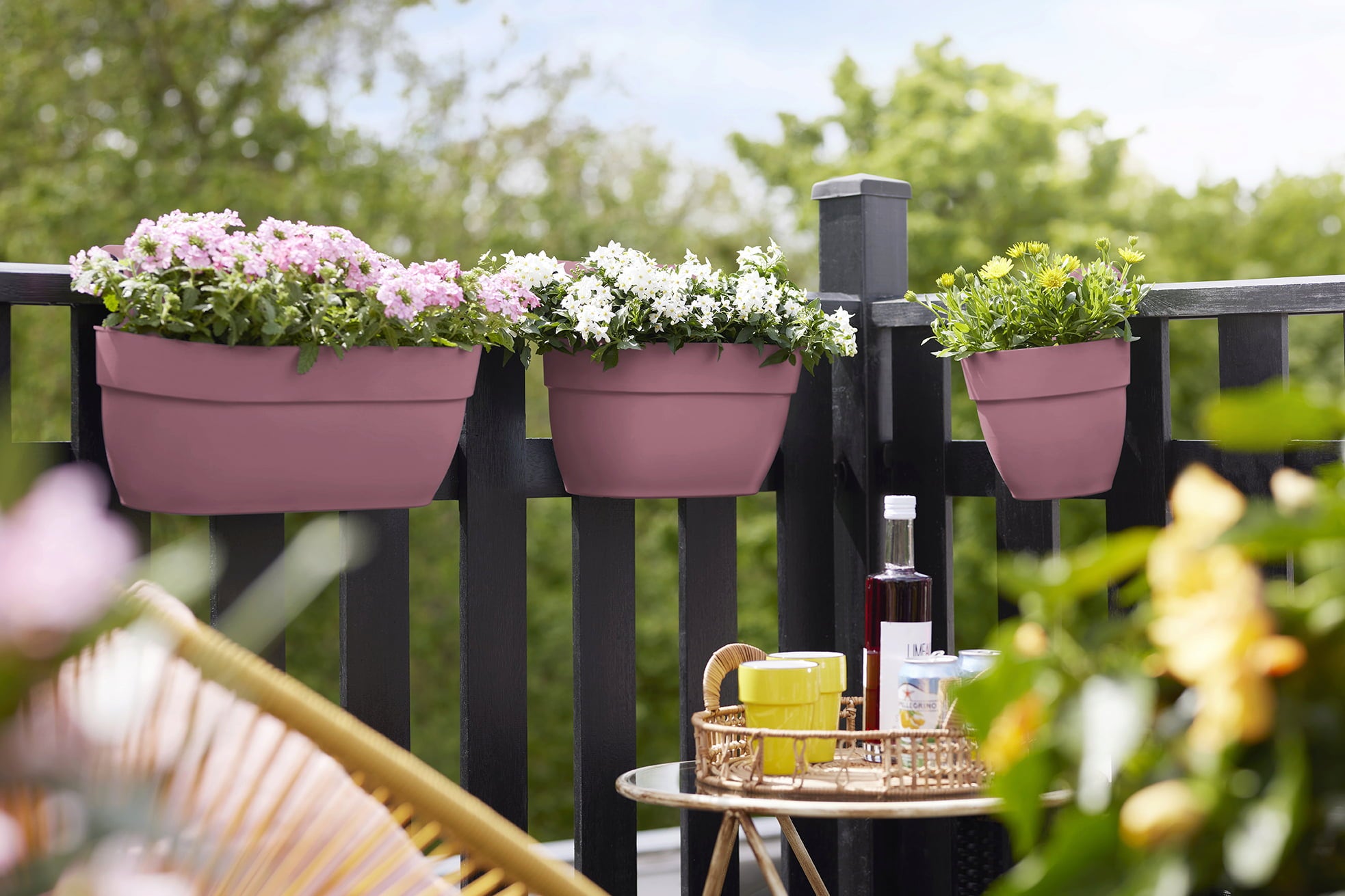 Dzięki wesołej wiszącej doniczce elho dobry nastrój jest gwarantowany - duży wybór kolorów i harmonijnie zaokrąglony kształt sprawiają, że jest to ulubiony element balkonu. Dzięki praktycznym haczykom można ją błyskawicznie przymocować do balustrady i równie szybko zdjąć, aby w każdej chwili móc ją przesadzić. Wyjątkowy element przyciągający wzrok, bez którego nie będziesz chciał się obejść!