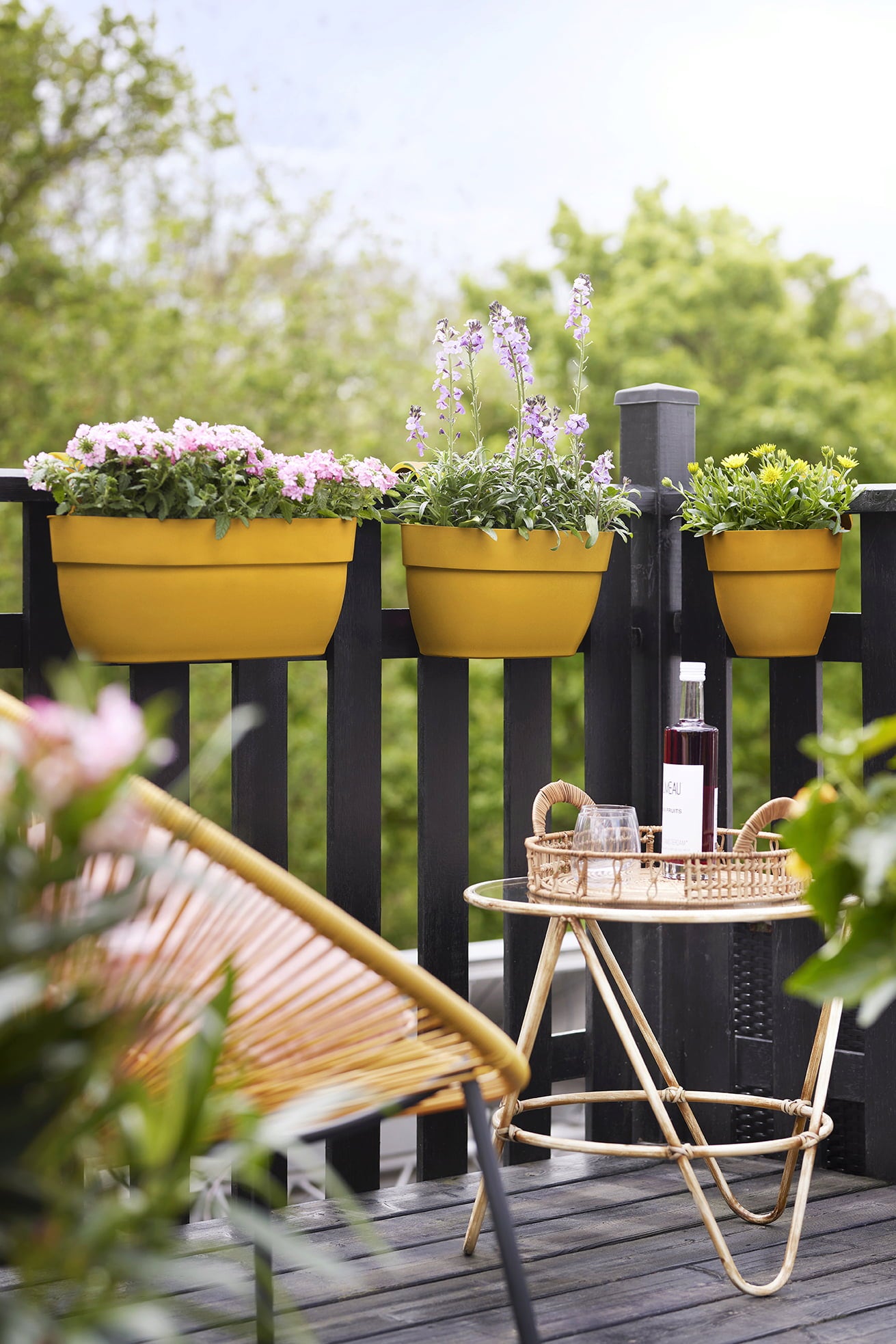 Dzięki wesołej wiszącej doniczce elho dobry nastrój jest gwarantowany - duży wybór kolorów i harmonijnie zaokrąglony kształt sprawiają, że jest to ulubiony element balkonu. Dzięki praktycznym haczykom można ją błyskawicznie przymocować do balustrady i równie szybko zdjąć, aby w każdej chwili móc ją przesadzić. Wyjątkowy element przyciągający wzrok, bez którego nie będziesz chciał się obejść!