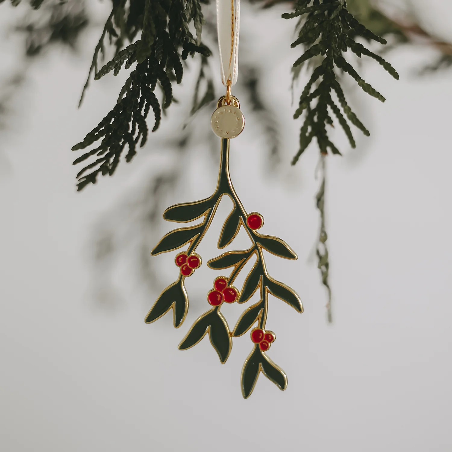 Ozdoba w kształcie jemioły przenosi magię świąt bezpośrednio na choinkę. Zaprojektowana w klasycznych odcieniach zieleni i czerwieni ze złotymi akcentami, zawieszka tworzy ciepłą, świąteczną atmosferę - może nawet pocałunek lub dwa pod choinką.