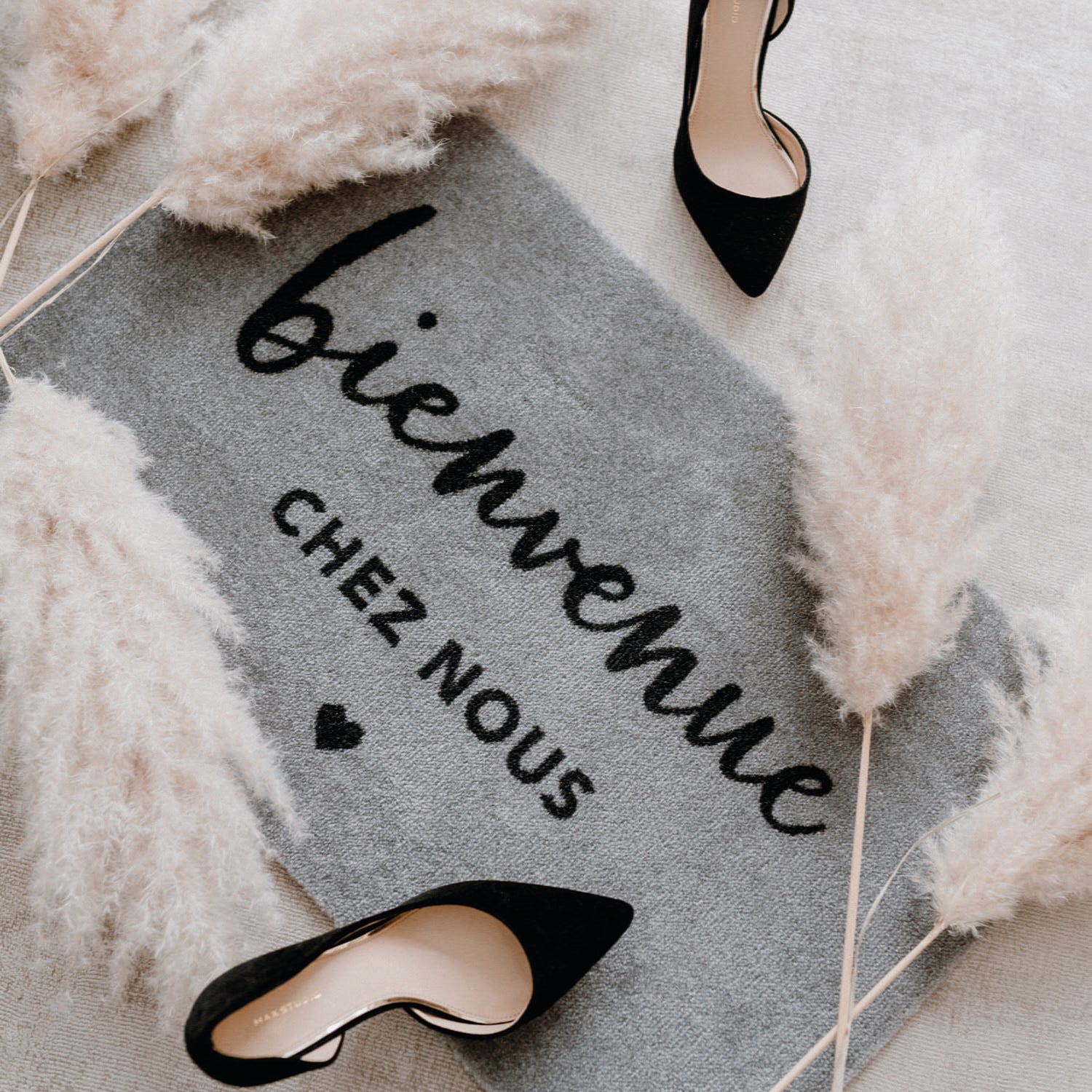Nie ma lepszego sposobu na powitanie gości niż napis "Witamy w naszym domu". Nadająca się do prania w pralce wycieraczka z pięknie zaprojektowanym francuskim napisem jest nie tylko atrakcyjna wizualnie, ale ma również doskonałe właściwości użytkowe i pielęgnacyjne, ponieważ można ją prać w pralce.