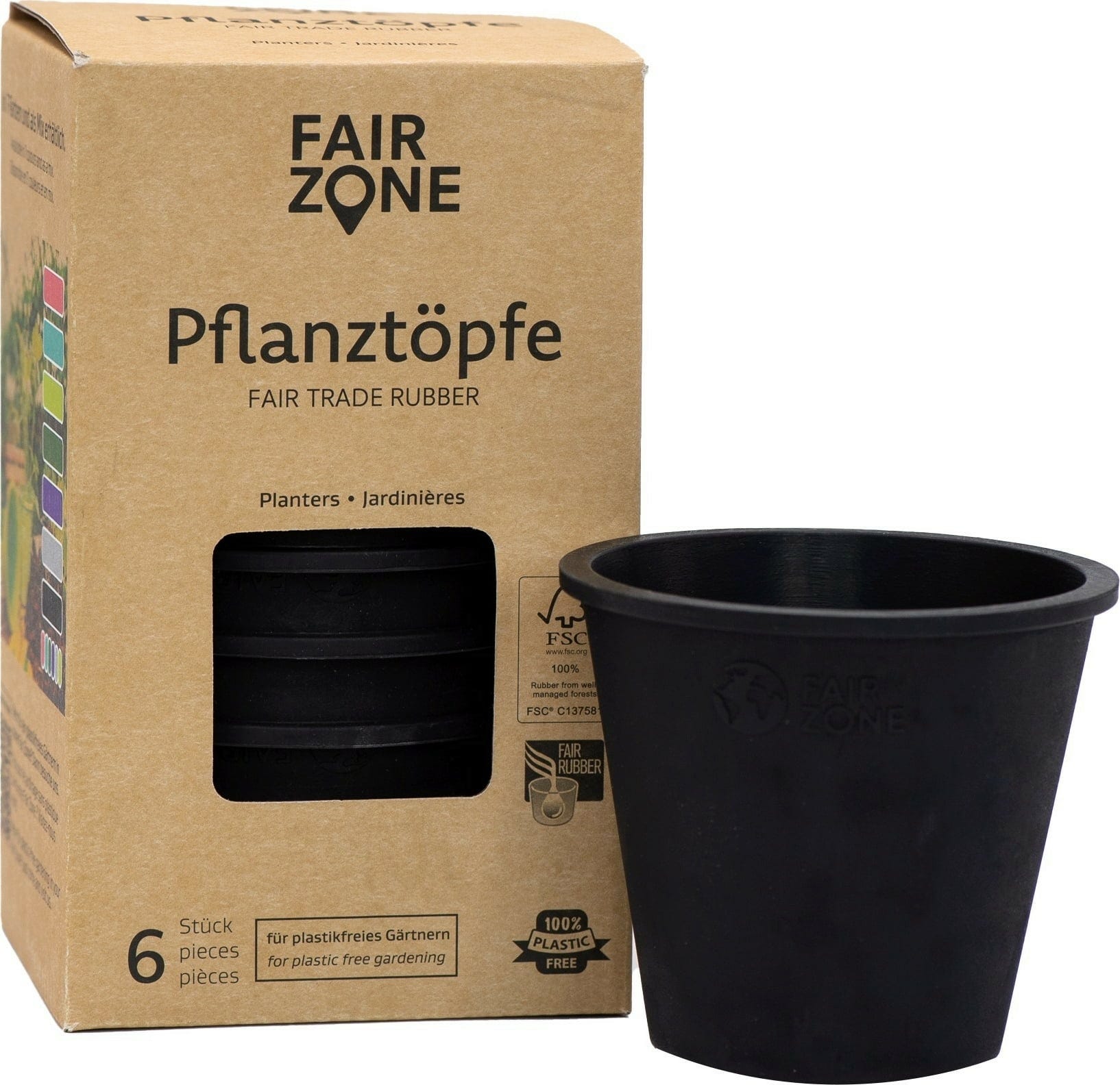FAIR ZONE Doniczka z naturalnego kauczuku, 6 szt., Black