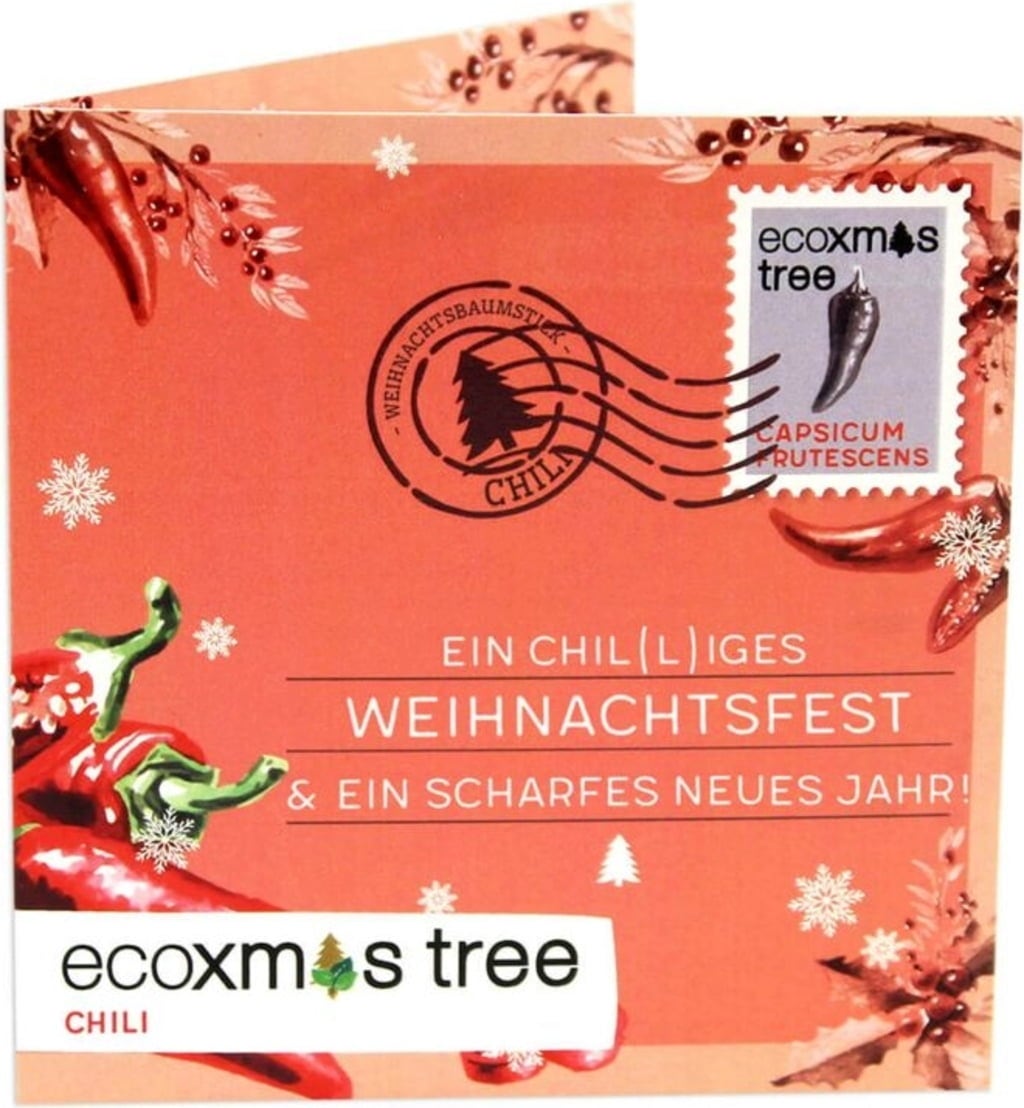 ecostick „ecoXmasTree” to ekologiczny pomysł na prezent i wspaniały upominek na święta Bożego Narodzenia. Małe, drewniane drzewko wystarczy wsadzić w ziemię, a wkrótce wyrośnie z niego mała papryczka chili odmiany „Capela”. Owoce o wielkości około 10 cm są niezwykle wyraziste i zapewnią pikantny początek nowego roku.
