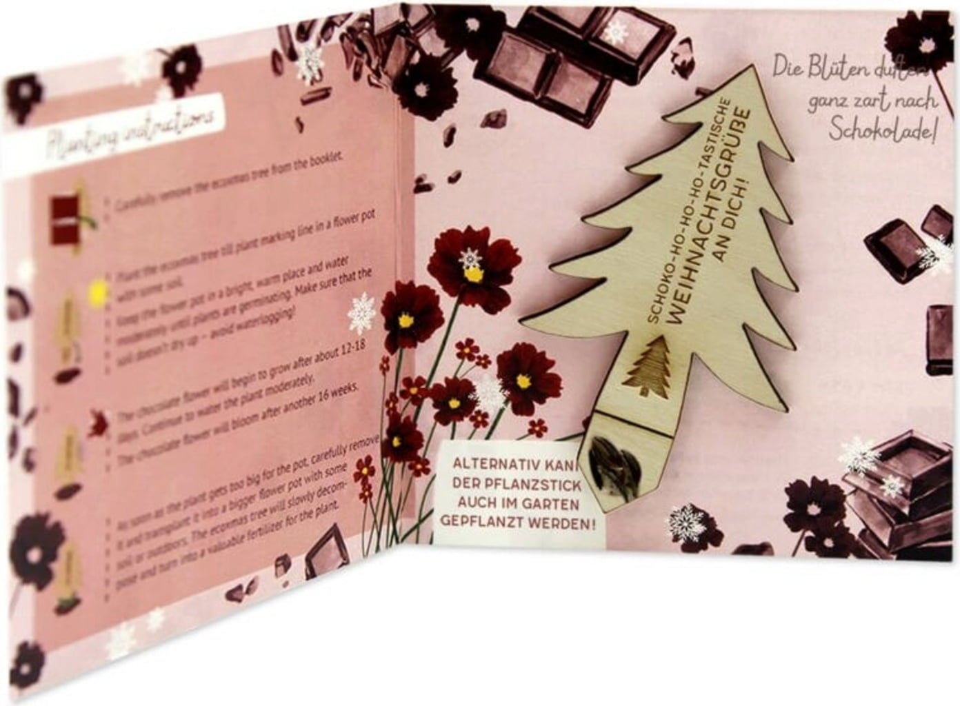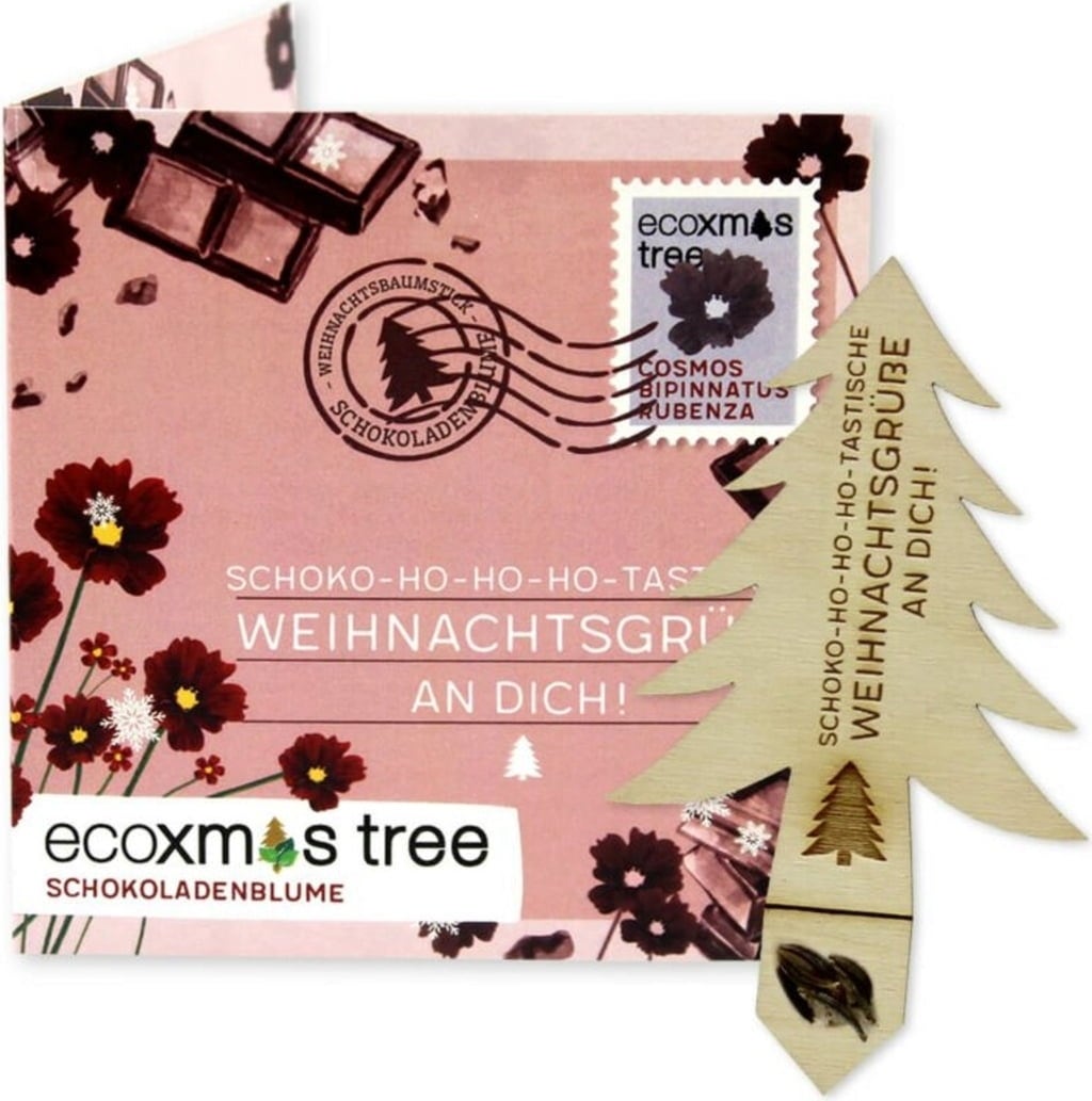 ecostick „ecoXmasTree” to ekologiczny pomysł na prezent i wspaniały upominek na święta Bożego Narodzenia. Małe, drewniane drzewko wystarczy wsadzić w ziemię, a wkrótce wyrośnie z niego piękny kwiat czekoladowy. Ta łatwa w uprawie bylina jest wierna swojej nazwie, ponieważ jej kwiaty wydzielają zachwycający zapach przypominający mleczną czekoladę.