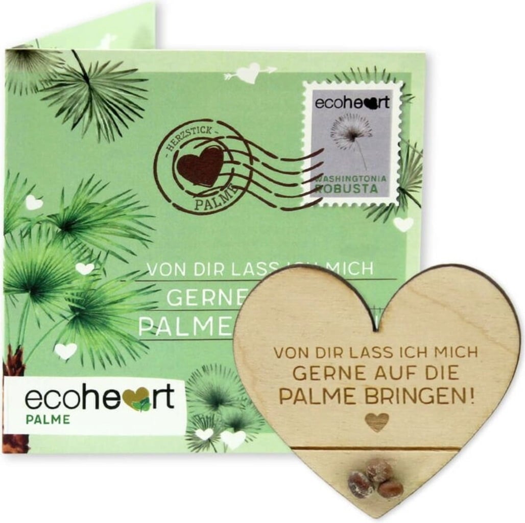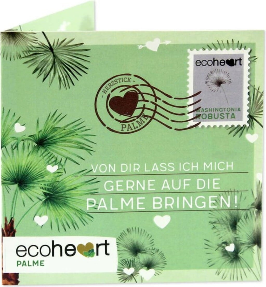 ecostick „ecoheart” to ekologiczny pomysł na prezent i wspaniały upominek dla kogoś wyjątkowego. Małe, drewniane serce wystarczy włożyć w ziemię, a wkrótce wyrośnie z niego ozdobna palma, która doskonale rośnie na zewnątrz przez całe lato. Wytrzymuje nawet krótkotrwałe spadki temperatur do -2°C. Egzotyczny prezent, który będzie sprawiał radość przez długi czas.