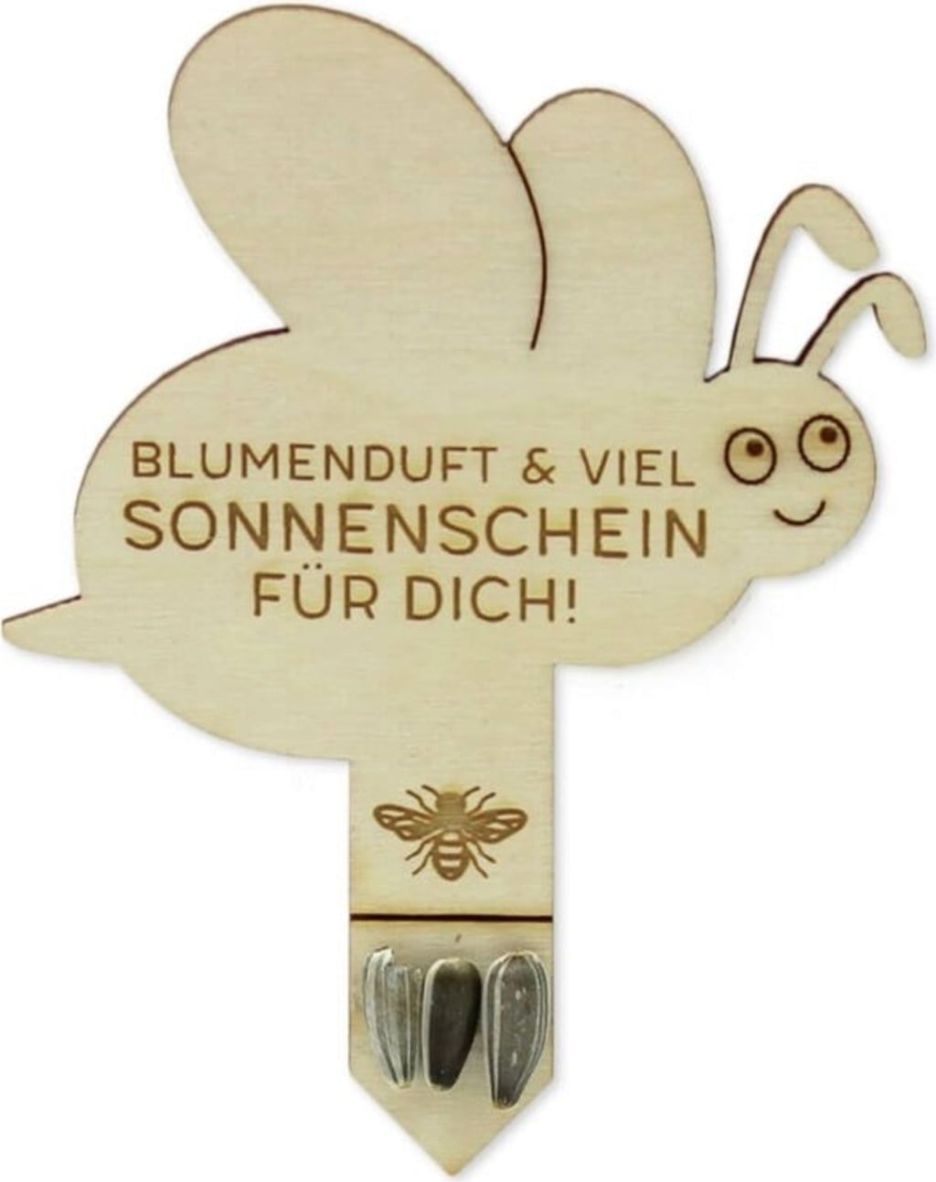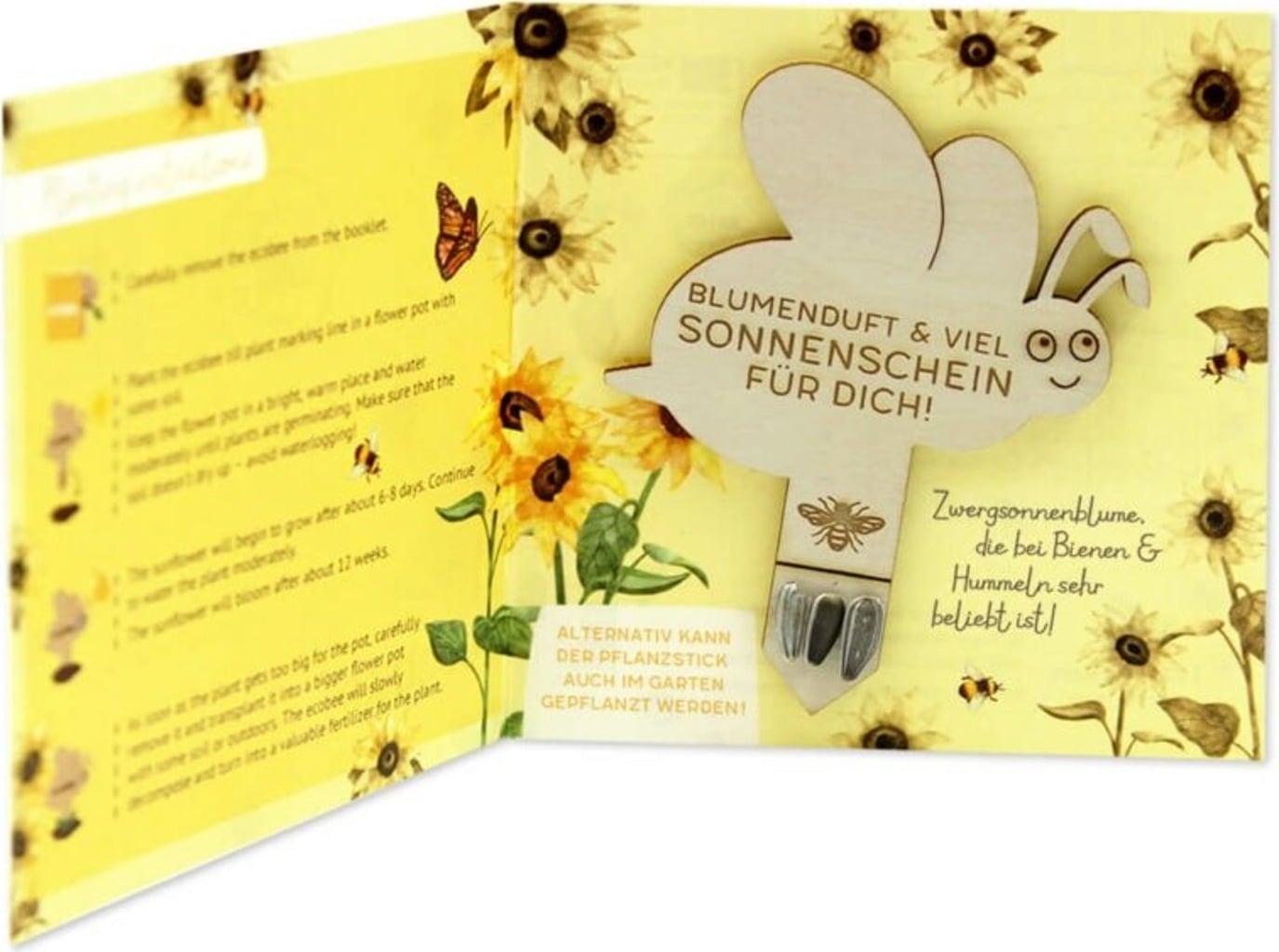 ecostick "ecobee" to ekologiczny pomysł na prezent i wspaniały upominek dla wyjątkowo bliskich osób. Mała drewniana pszczółka jest po prostu wbijana w ziemię i wkrótce rozwija się w zachwycający słonecznik karłowaty. Prezent, który pochodzi z serca i z pewnością zostanie zapamiętany na długi czas.