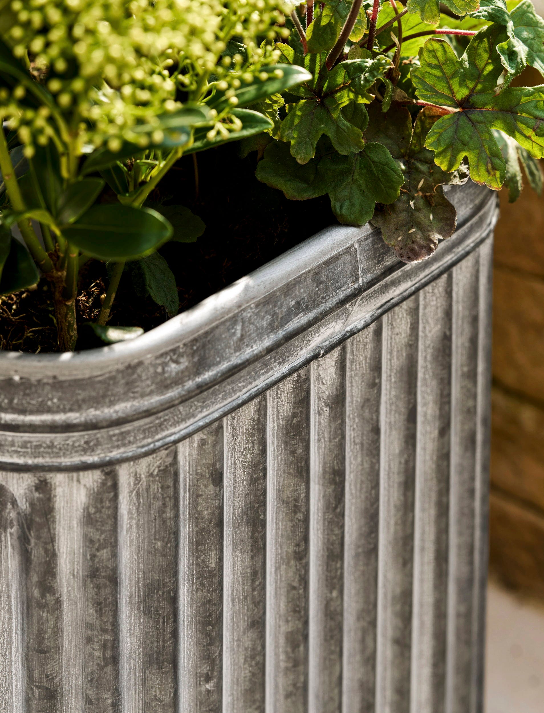 Dzięki wyraźnej, kwadratowej sylwetce i solidnej konstrukcji, ta doniczka w chłodnym industrialnym stylu jest idealnym pojemnikiem na paprocie, zioła lub sezonowe rośliny kwitnące - idealna oprawa dla ulubionych roślin.