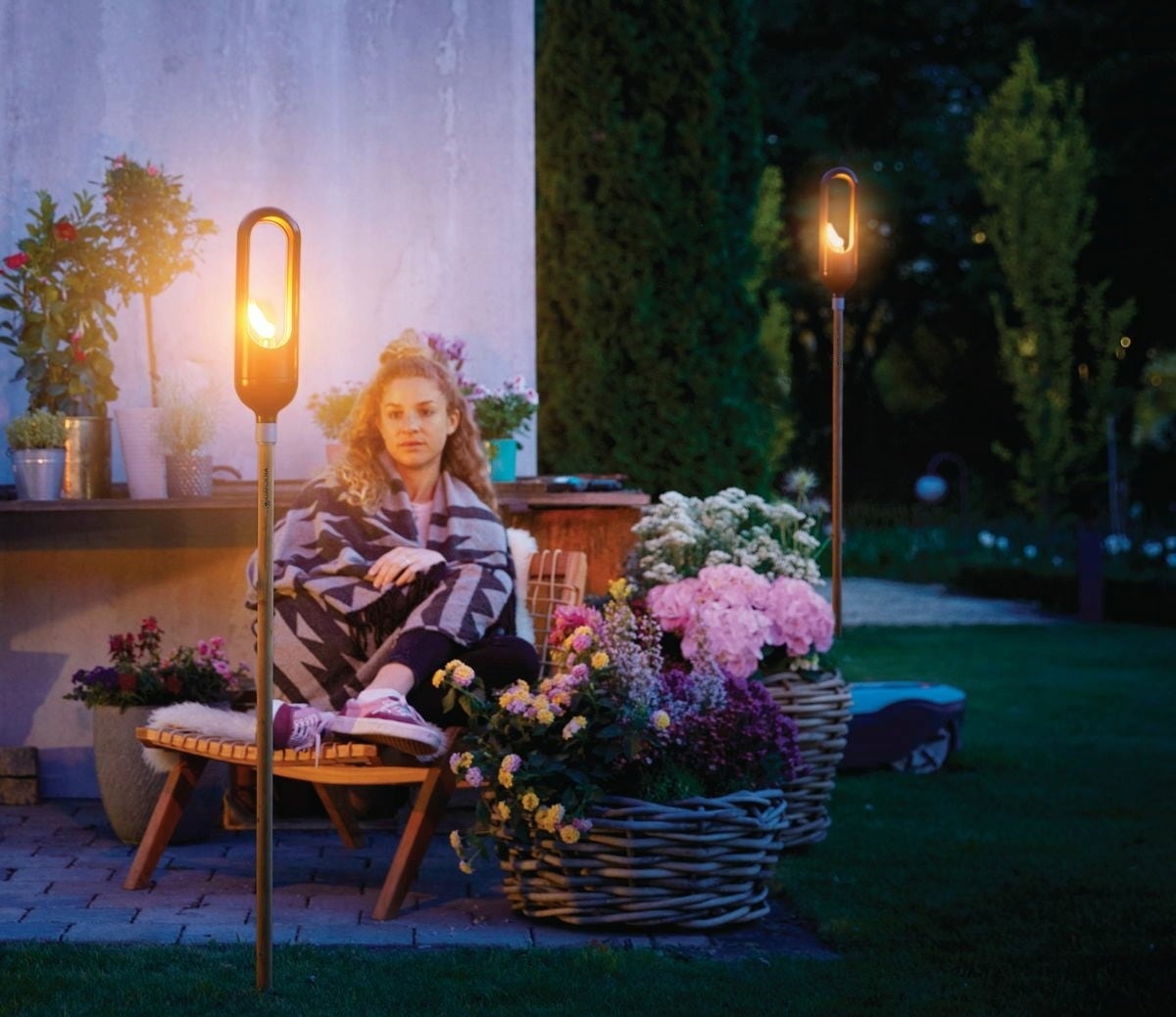 Ocieplające światło w ogrodzie zapewnia nastrojową atmosferę.