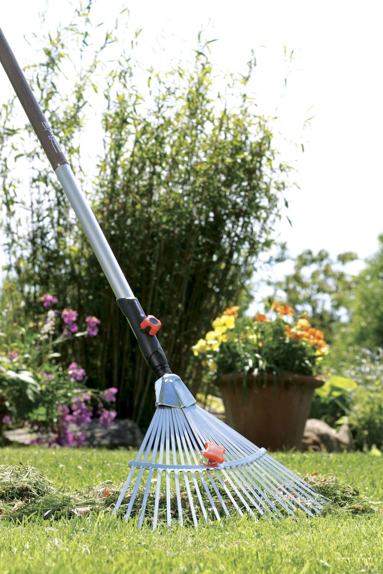 Dzięki tym praktycznym, regulowanym grabiom combisystem szybko i łatwo zbierzesz liście, skoszoną trawę, filc i wiele innych odpadów ogrodowych. Pasują do wszystkich trzonków Gardena combisystem i są niezastąpionym pomocnikiem w utrzymaniu czystości i dobrego stanu ogrodu.