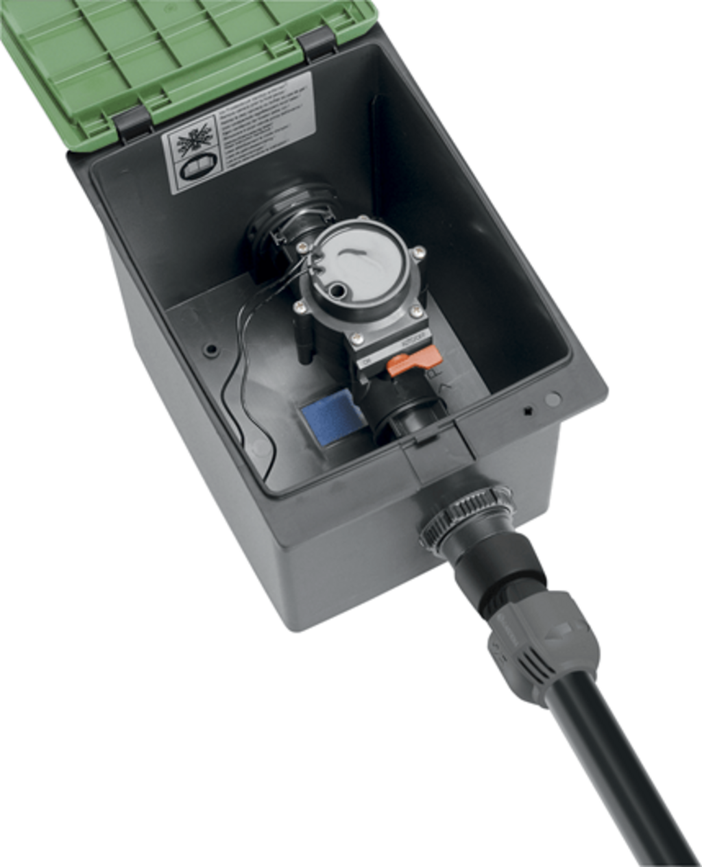 Zacisk kablowy 24 V umożliwia wodoszczelne podłączenie kabla przyłączeniowego 24 GARDENA. Proste podłączenie odbywa się za pomocą przycisku.