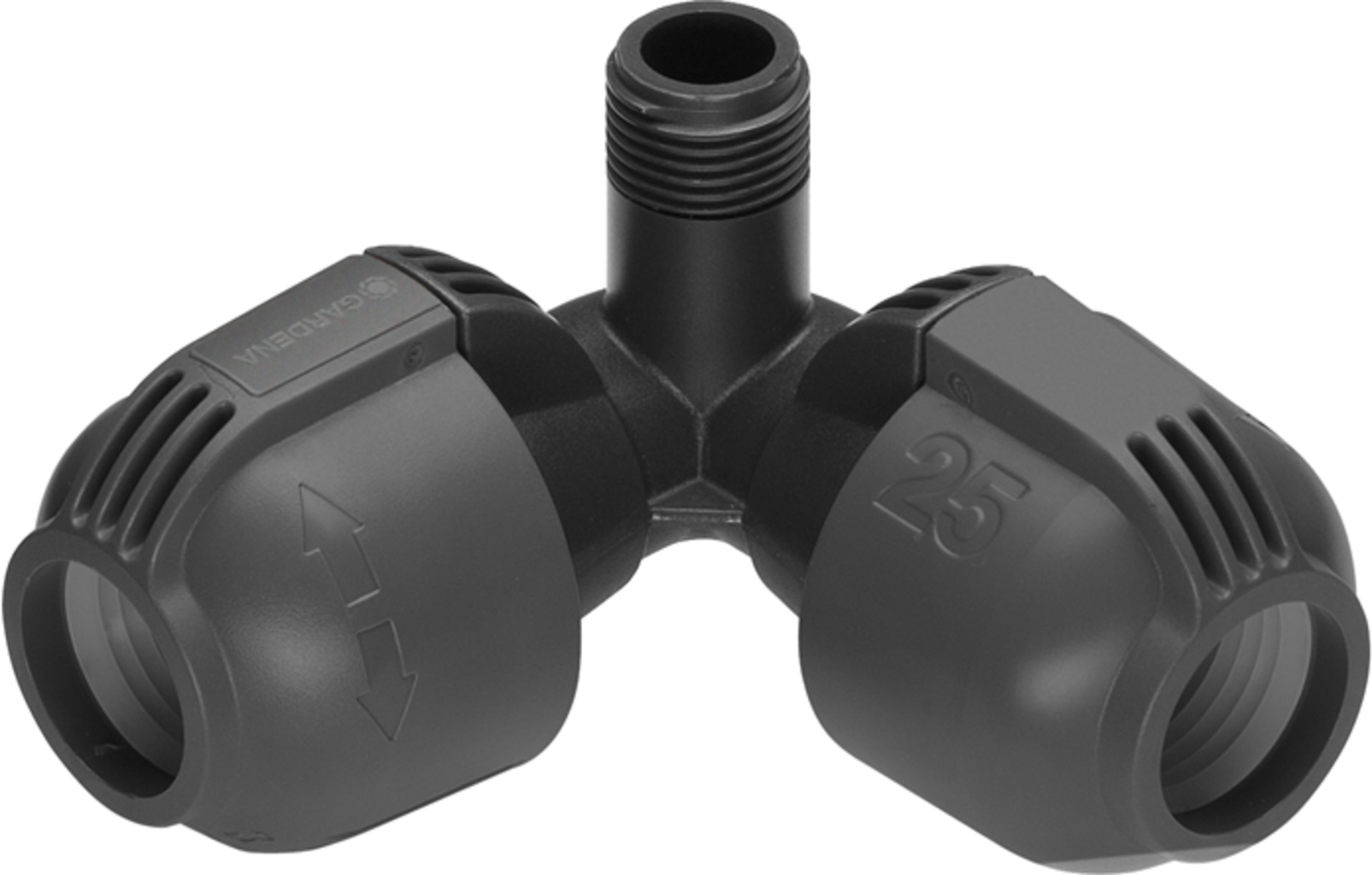 GARDENA kolanko z gwintem zewnętrznym 25 mm x 1/2" to idealne akcesorium do podłączania zraszaczy wynurzalnych T 100 i T 200 w narożnikach.