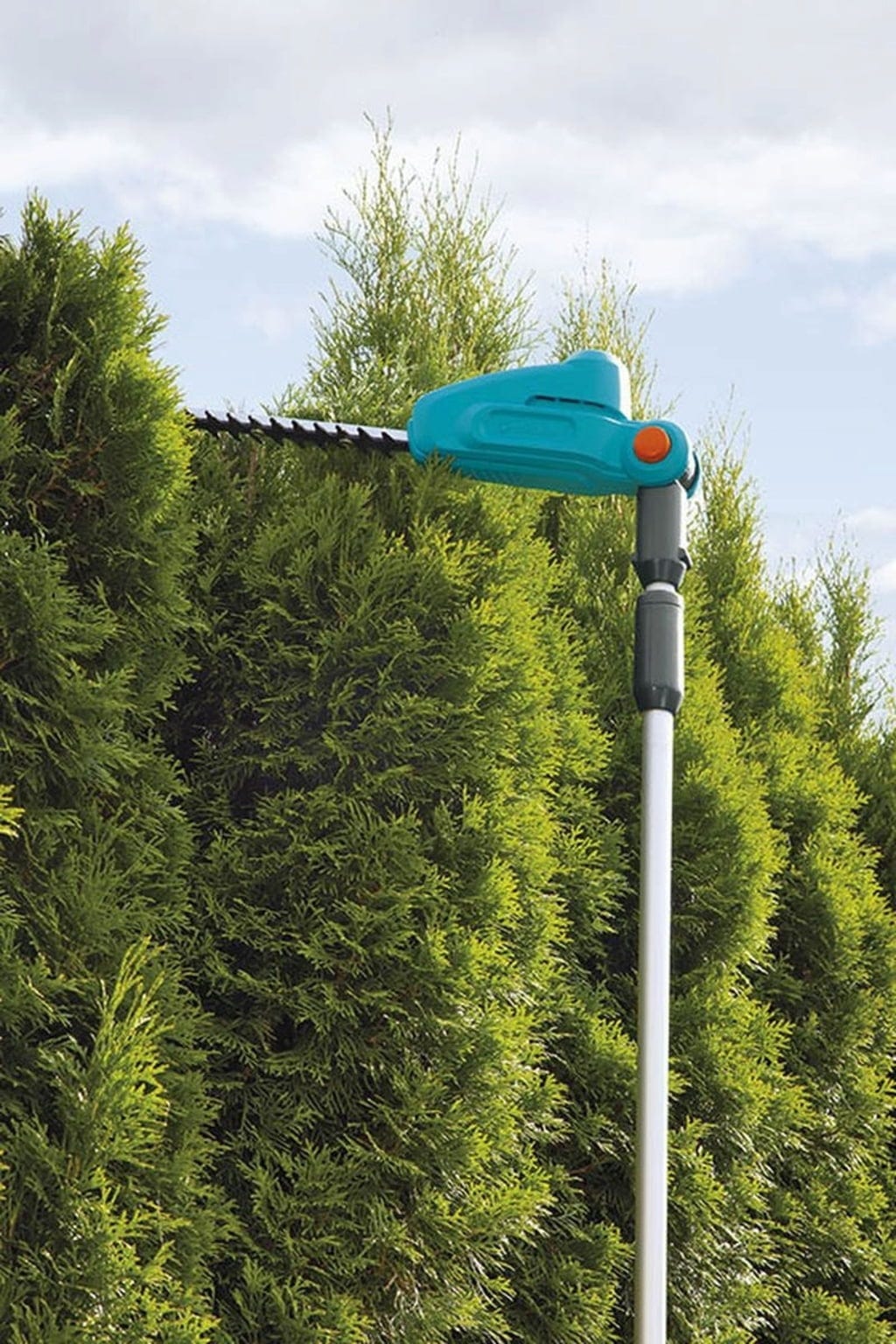 - Głowicę tnącą można łatwo ustawić pod kątem, aby ustawić ostrze w prawidłowej pozycji do cięcia - dzięki temu można wygodnie i precyzyjnie przycinać żywopłot