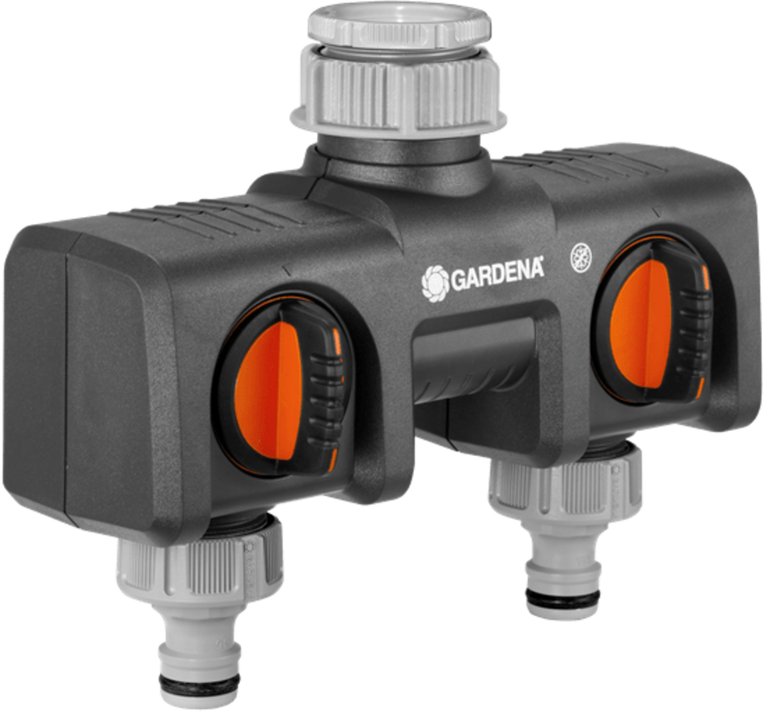 GARDENA rozdzielacz 2-drożny jest podłączany bezpośrednio do kranu i umożliwia instalację dwóch przyłączy jednocześnie. Możliwe jest również sterowanie maksymalnie dwoma komputerami wodnymi lub zegarami sterującymi. Za pomocą regulatorów można także indywidualnie regulować lub odcinać przepływ wody w każdym przyłączu. Idealne rozwiązanie, gdy potrzebna jest więcej niż jedna metoda nawadniania w tym samym czasie.