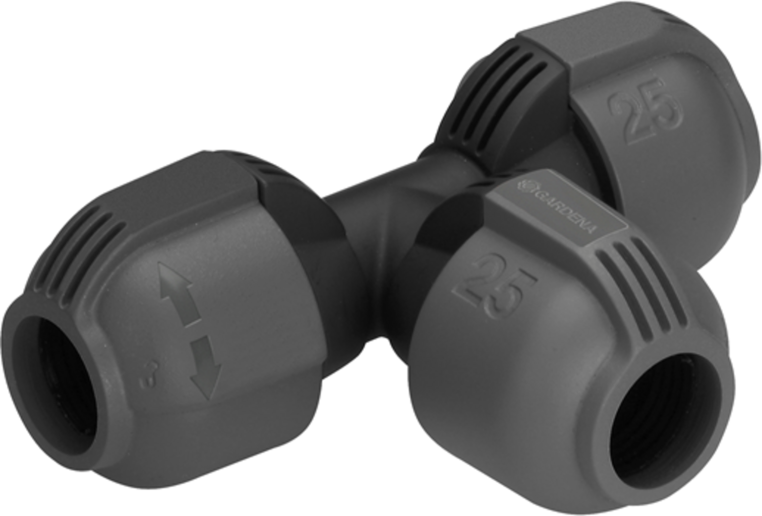 Trójnik 25 mm Gardena służy - jako część systemu zraszaczy Gardena - do prostego rozgałęziania rur. Dzięki opatentowanej technologii szybkiego łączenia "Quick & Easy" rurę można zamontować lub zdemontować bez użycia narzędzi, po prostu obracając połączenie śrubowe o 140°.