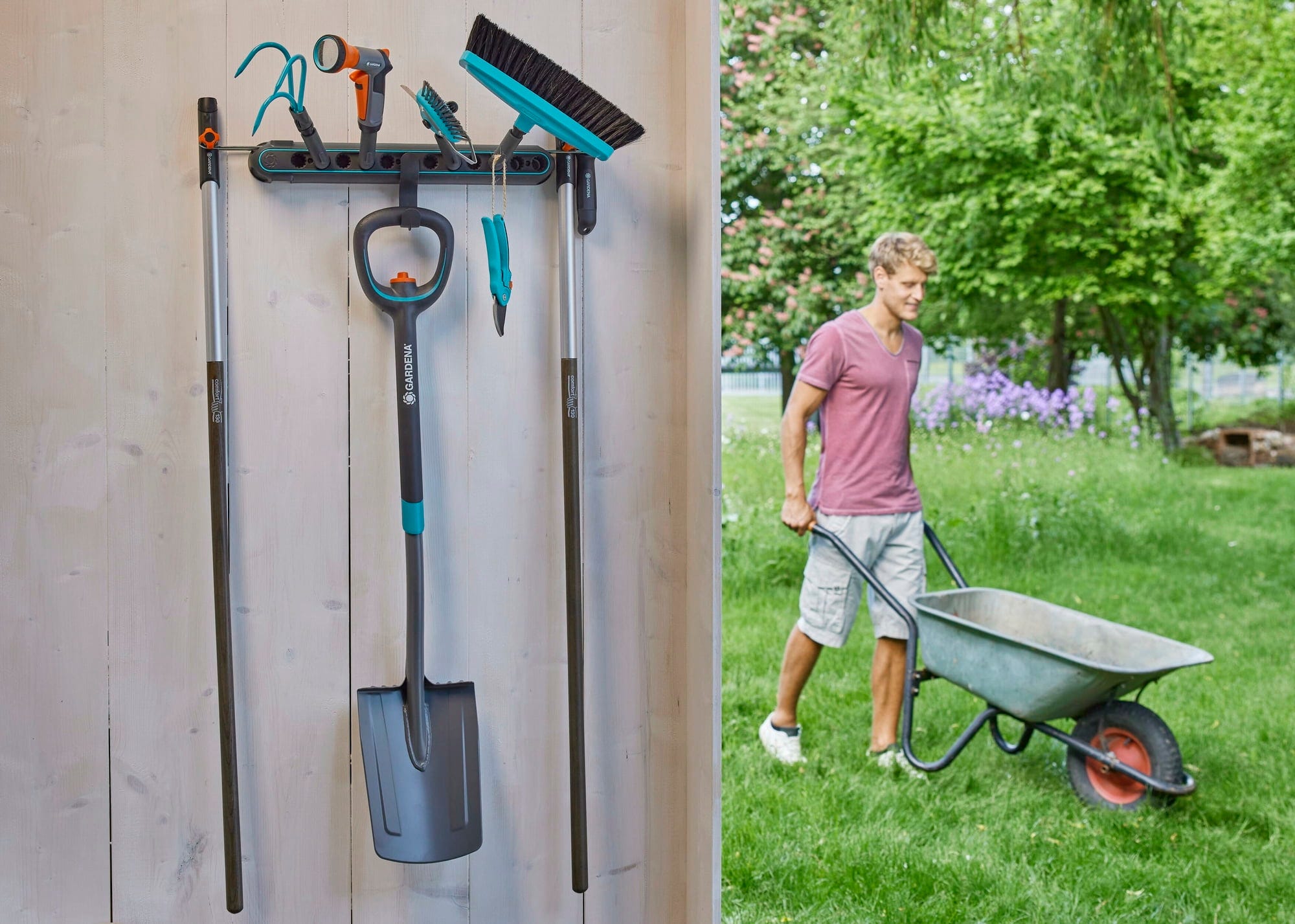 Szyna narzędziowa combisystem Flex to idealna opcja przechowywania narzędzi ogrodowych i uchwytów. Szyna narzędziowa może być montowana zarówno pionowo, jak i poziomo.