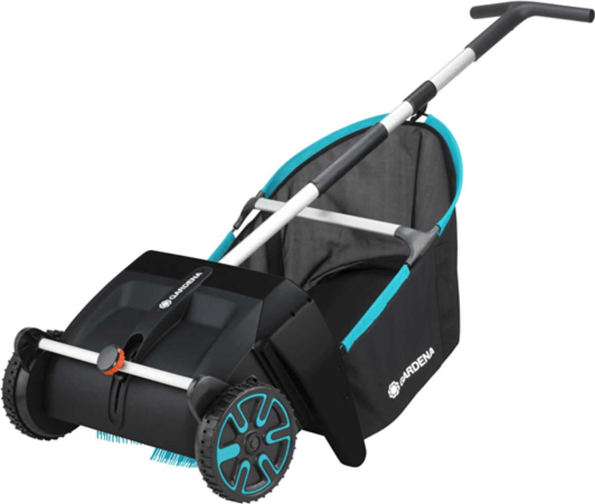 - Obrotowe szczotki wewnątrz szybko i skutecznie zbierają liście, skoszoną trawę i nie tylko
