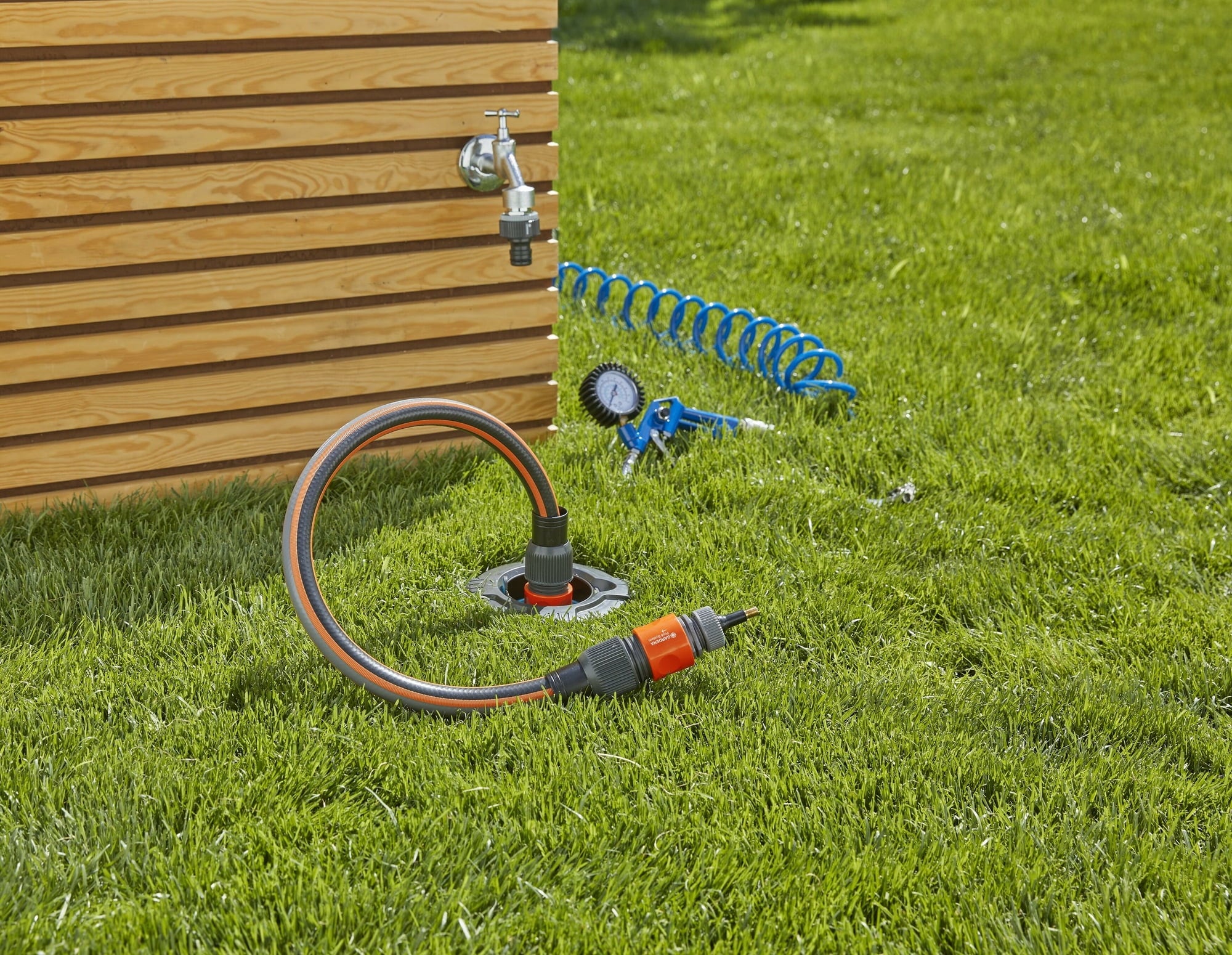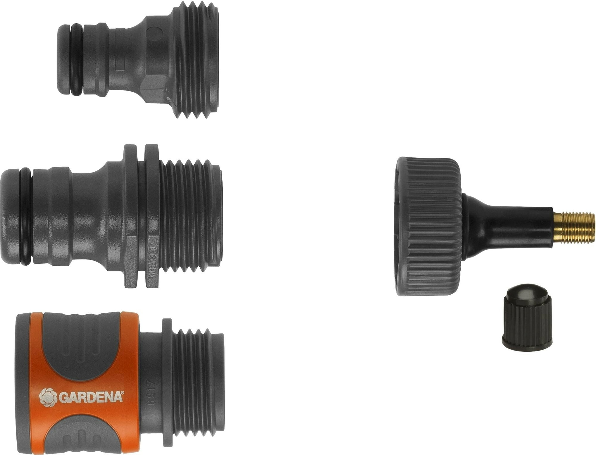 - Zawartość: 1 standardowy zawór powietrza do samochodu, 3 różne końcówki do oryginalnych złączy węży GARDENA System, oryginalna złączka GARDENA System i złączka Professional System