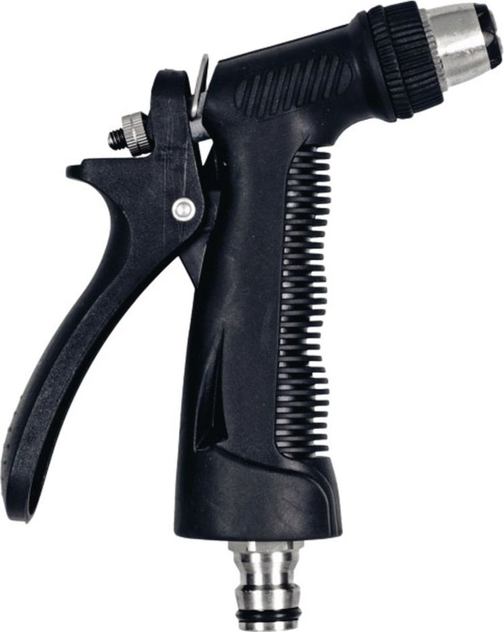 Ta ergonomiczna dysza pistoletu zraszającego zapewnia komfort podczas podlewania. Płytkowy uchwyt wygodnie leży w dłoni, a strumień wody można płynnie regulować - od silnego do delikatnego. Dla dłuższego użytkowania dostępna jest stała blokada. Zgodność ze wszystkimi standardowymi systemami wtykowymi zapewnia maksymalną elastyczność w codziennej pracy w ogrodzie.