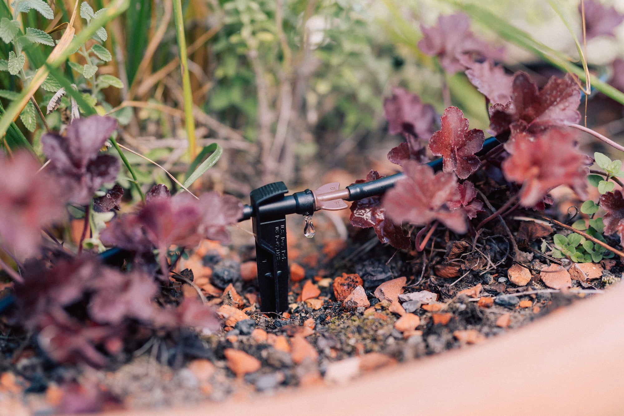 Dzięki wysokiej jakości podstawowemu zestawowi nawadniającemu "Balkon i taras" firmy GEKA, rośliny w doniczkach i skrzynkach balkonowych mogą być optymalnie zaopatrywane w wodę. System jest szczególnie szybki w montażu dzięki instalacji naziemnej. Ponieważ nie wszystkie rośliny mają takie samo zapotrzebowanie na wodę, można optymalnie regulować jej dopływ. Za pomocą zestawu można wygodnie podlewać do 10 roślin lub donic, dzięki czemu w przyszłości nie trzeba będzie sięgać po konewkę.