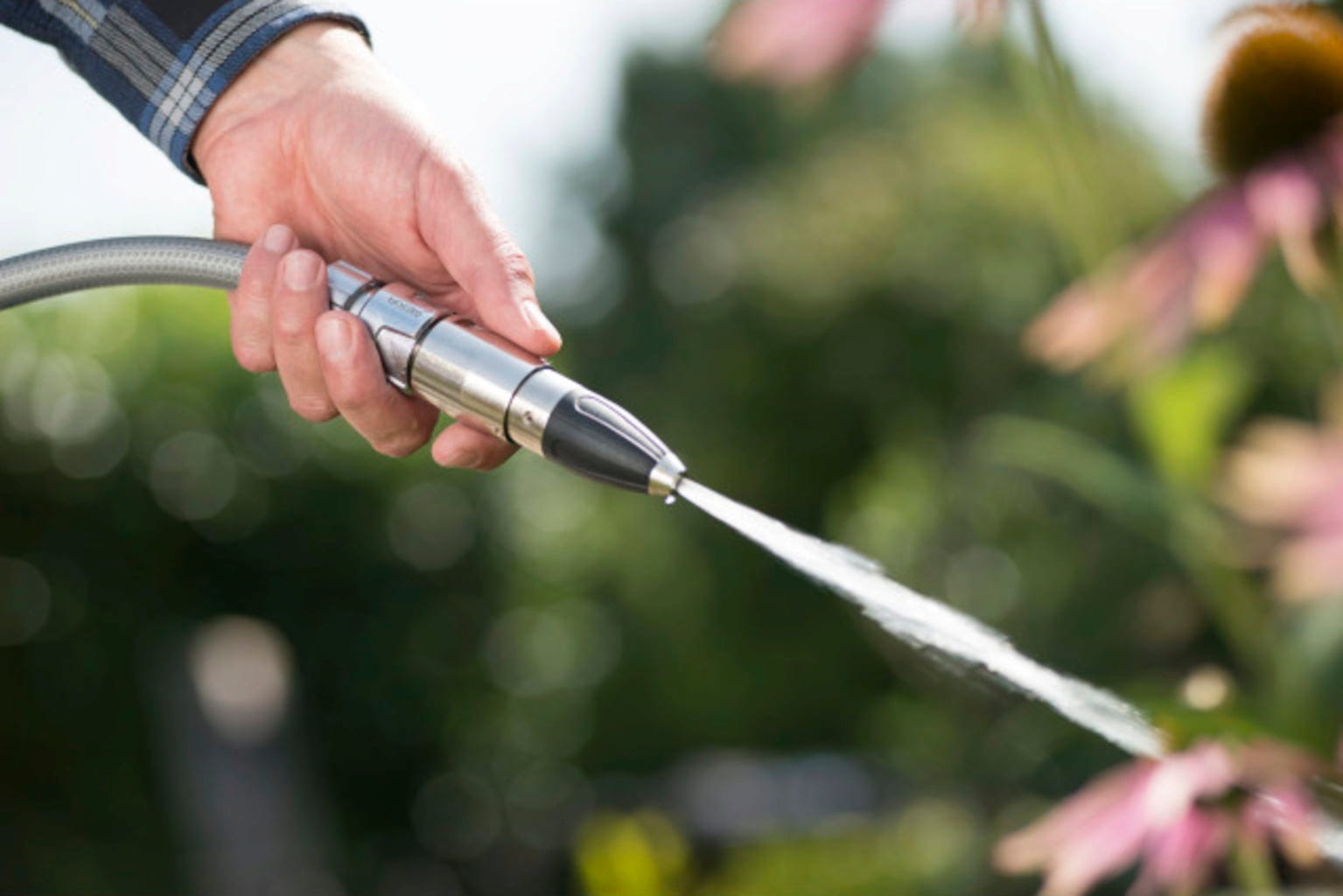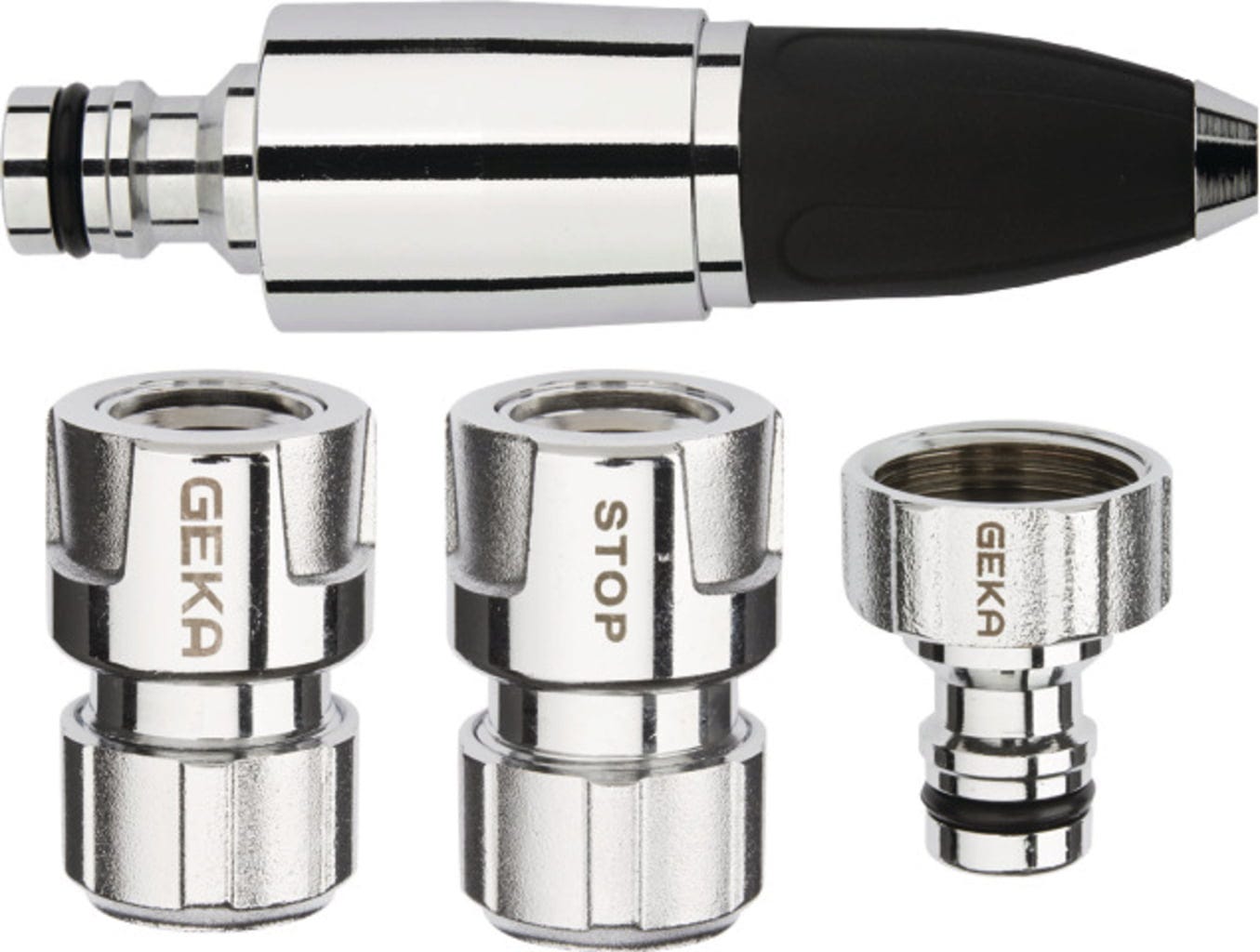 Optymalny zestaw startowy, aby natychmiast rozpocząć pracę! Dysza zraszająca posiada przyjemną gumowaną powłokę, dzięki czemu dobrze leży w dłoni. Strumień wody można regulować bezstopniowo – od pełnego punktowego po delikatną mgiełkę. Do podłączenia kranu służy przyłącze kranowe oraz szybkozłączka do węża. Aby umożliwić łatwą wymianę akcesoriów bez utraty wody, na końcu węża mocuje się szybkozłączkę z funkcją „stop”. Wszystkie elementy zostały wykonane z chromowanego mosiądzu, dzięki czemu są niezwykle wytrzymałe i cechują się bardzo długą żywotnością.