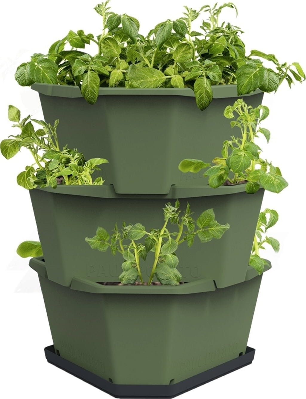 Wieża ma trzy piętra, które sprawdzą się nie tylko w uprawie ziemniaków, ale można obsadzić je oczywiście innymi warzywami. Najwyższa kondygnacja doskonale nadaje się również do stworzenia ogródka ziołowego. Dzięki swoim kompaktowym rozmiarom i kompaktowej konstrukcji PAUL POTATO idealnie prezentuje się na balkonach, tarasach oraz w mniejszych ogrodach, dzięki czemu nie potrzebujesz dużo miejsca, aby w przyszłości zapewnić sobie ziemniaki i warzywa najlepszej jakości.