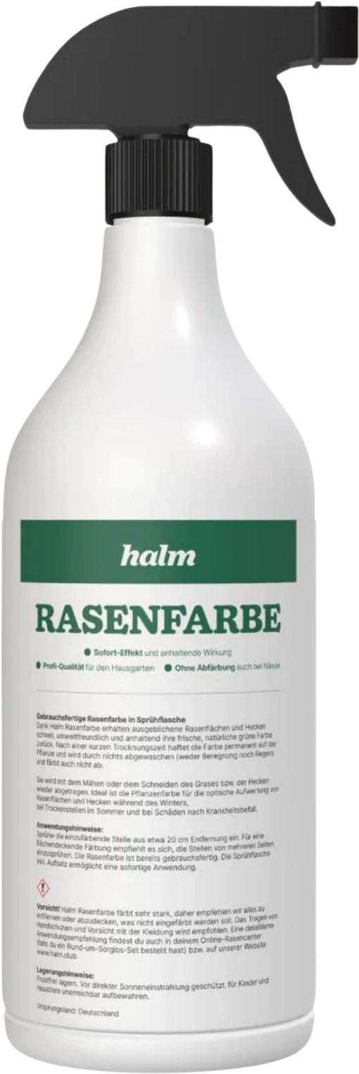 Jeśli Twój trawnik wydaje się blady lub ma plamy, nie musisz długo czekać – dzięki farbie do trawnika Halm w mgnieniu oka wyczarujesz świeżą, soczystą zieleń. Aplikacja jest prosta i natychmiast zapewnia zadbany wygląd, bez długiego czasu regeneracji.