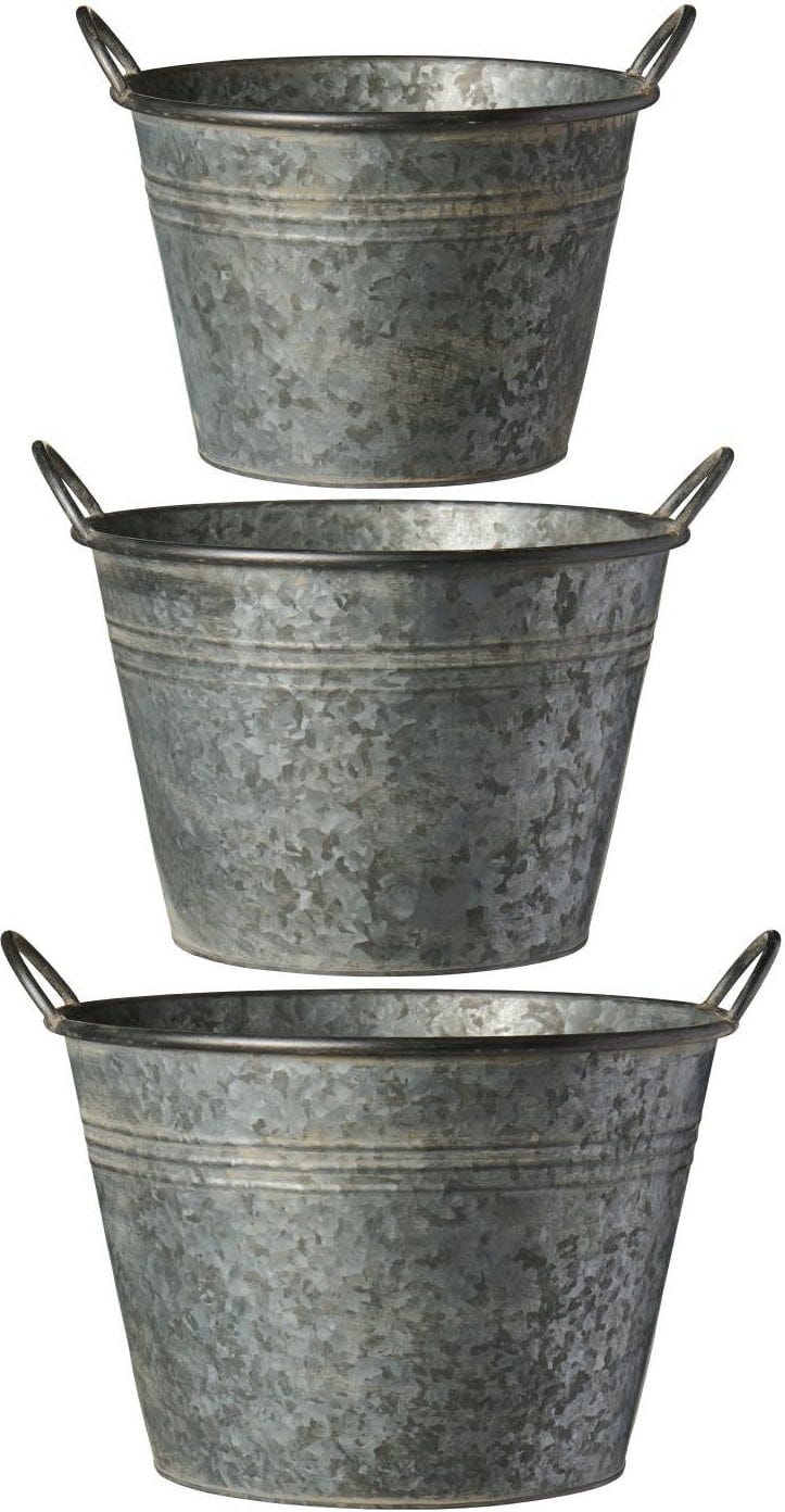 Ten zestaw 3 doniczek o różnych rozmiarach zachwyca surowym, industrialnym wzornictwem i wnosi rustykalny urok do ogrodu. Doskonale nadaje się do gustownych aranżacji roślinnych i stylowo eksponuje ulubione rośliny.